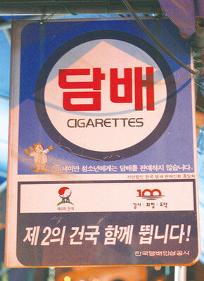 담배 간판에 헤딩∼. 사진 〈한겨레21〉윤운식 기자