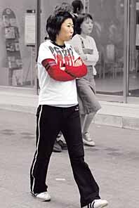 대학원 동료들 사이에서 옷 잘 입기로 소문난 이아무개(26)씨도 최근 검은색 트레이닝 바지를 한벌 샀다. 이씨는 본래 단정한 느낌의 정장을 주로 입어 어른스럽고 클래식한 스타일로 등교하곤 했다. 그러던 그가 빨간 줄 선명한 트레이닝 바지를 입게 된 것은 유행을 무시할 수 없었기 때문이다. 트레이닝복에 맞춰 산 검은색 스니커즈에 모자 달린 점퍼를 입고 강의실에 들어서는 그의 모습은 2003년 봄 대학가 풍경에서 조금도 어색할 것이 없다.