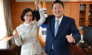 김혜경 여사, ‘우리들의 블루스’ 정은혜 작가 전시 관람