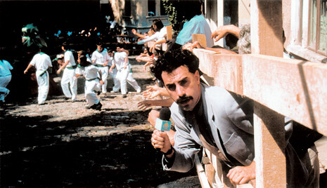 딜레마는 이렇다. 정치적으로 올바른 것은 지루하다. 그렇다고 정치적으로 올바르지 않은 것은 재미있느냐… 하면 불편하다. 번역 제목부터 ‘골 때리는’ 영화 (이하 )는 내용도 ‘골 때린다’. 영화는 천연덕스럽게 ‘제작 카자흐스탄 정보부, 카자흐스탄TV’라는 자막으로 시작한다. 하마터면 카자흐스탄에서 제작한 다큐멘터리인가 오해하기 십상이다. 물론 영화를 보면서 ‘골 때리는’ 상황 때문에 ‘이것은 다큐멘터리 같은 영화’라는 선언이로군, 생각을 바꾼다. 하지만 영화가 끝나고 나서도, 어디까지가 실제 상황이고 어디까지가 연출인지, 헷갈린다. 이름하여 모큐멘터리(Mocumentary), 현실과 허구를 뒤섞은 영화다. 정치적으로 올바름 따위야 조롱하는 은 이렇게 시작된다.