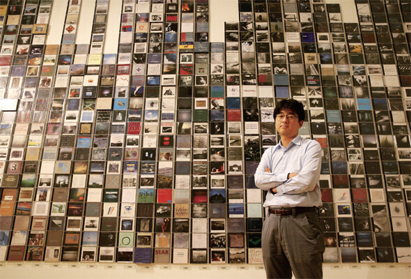 ECM은 동시대 음악과 유러피언 재즈를 가장 아름다운 질감으로 담아내는 레이블로 알려져 있다. 아시아 최초로 기획된 한국 ‘ECM전’은 평범한 음악팬에 의해 구상됐다. 기획자 김범상씨가 ECM 발매 음반을 전시해놓은 벽 앞에 서 있다.김명진
