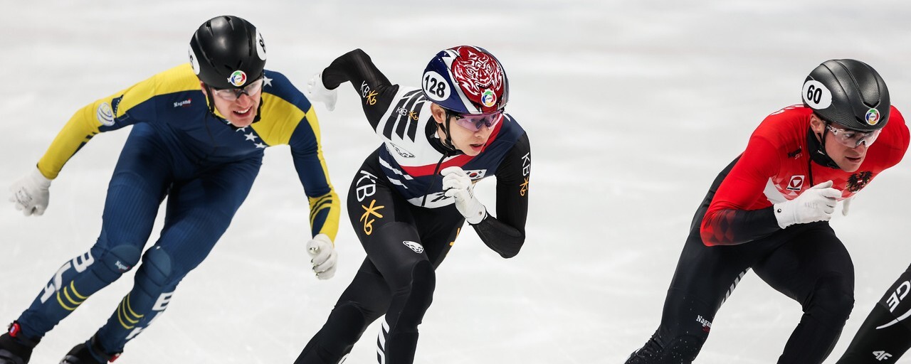 2025년 3월 중국 베이징에서 열린 2025 국제빙상경기연맹 쇼트트랙 세계선수권대회에 출전한 이정수(가운데) 선수. 이정수 제공