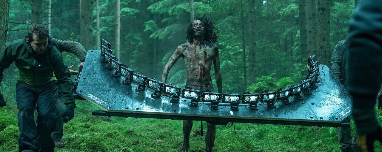 아이폰15 프로맥스 20개를 연결해 180도 각도로 감염자의 움직임을 촬영하는 영화 ‘28년 후’ 제작 장면. 소니픽처스코리아 제공