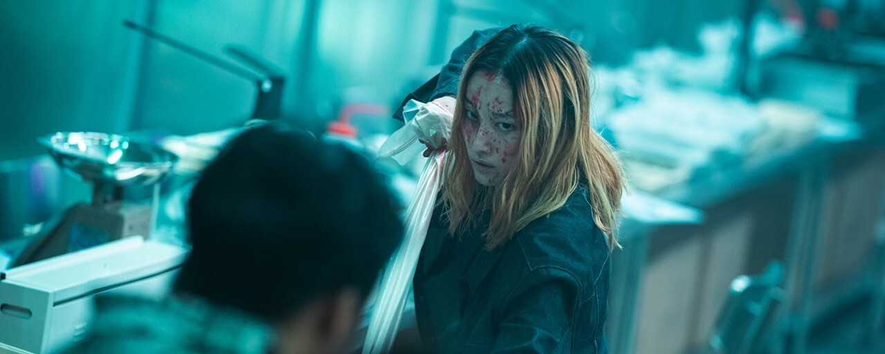 그런데 영화적인 연출에 공들일수록 현실의 나이프 디펜스와는 멀어지고 영화는 딜레마에 빠진다. ‘발레리나’는 2030 여성 관객을 타깃으로 만든 넷플릭스 오리지널 영화로 스타일리시한 액션을 표방한다. 그러자면 슬로모션, 조명, 사운드를 활용한 연출을 우선시할 수밖에 없다. 대표적인 예가 가장 많은 인원이 등장하는 대규모 액션 장면이다. 여기서 옥주는 전투를 위해 총을 준비하지만 원거리에서도 적을 살해할 수 있는 총의 이점을 충분히 살리지 못한다. 너무 쉽게 총을 버리고 맨손 격투를 선택하거나 칼을 든 다수의 적에게 둘러싸인 채 절대적으로 불리한 상황에서 싸우는 장면이 종종 보인다.