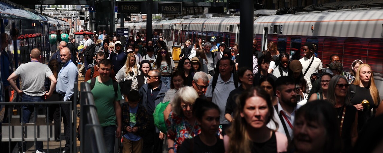 2024년 7월19일 런던 킹스크로스역에서 출근하는 시민들. 소설 해리포터에는 킹스크로스역 9번 승강장과 10번 승강장 사이에 마법사만 통과해 호그와트 급행열차에 오를 수 있는 ‘9와 4분의3 승강장 역’이 나온다. EPA 연합뉴스