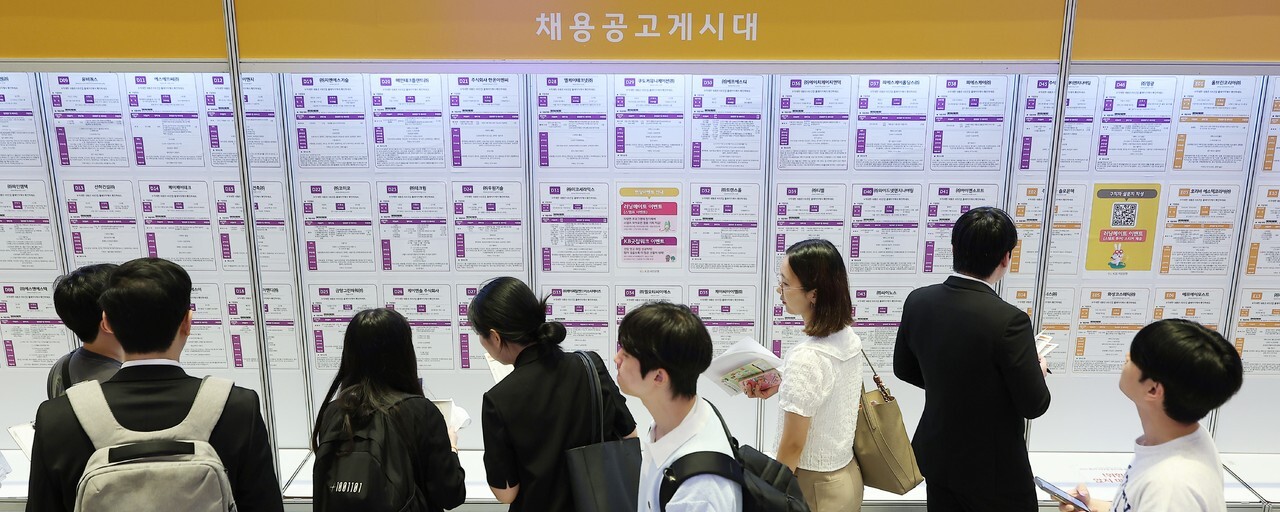 2025년 5월26일 서울 강남구 코엑스에서 열린 ‘2025 제1차 케이비(KB)굿잡 우수기업 취업박람회’에서 구직자들이 채용 공고 게시판을 둘러보고 있다. 연합뉴스