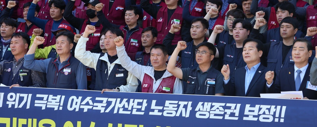 2025년 4월28일, 전라남도 여수시청 앞에 노동자 100여 명이 섰다. 여수 국가산업단지 내 석유화학 하청 노동자와 화물운송 노동자, 건설·플랜트건설 노동자다. 여수산단 관련 4개 산별노조가 한자리에 모인 건 이번이 처음이다. 석유화학산업 위기가 심상치 않음을 느낀 노동자들이 자발적으로 뭉친 것이다. 이들은 이날 ‘여수산단 산별노조 공동대책위원회’(공대위)를 출범시켰다.