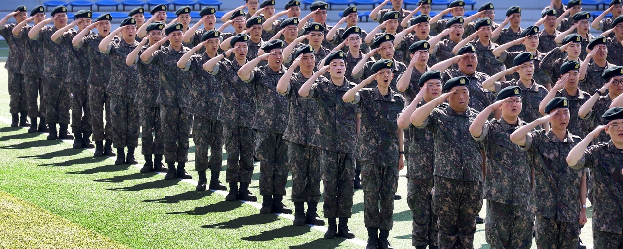 제복을 입고 시민들 사이에서 공동체를 위해 일할 젊은이들이 우렁찬 소리로 “충성”을 외친다. 2025년 6월12일 충남 논산시 연무읍 육군훈련소 연병장에서 ‘25-14기 신병교육 수료식’이 열렸다. 이날의 주역은 지난 5월22일 훈련소에 입소해 3주간의 훈련을 마친 보충역 근무자들이다.