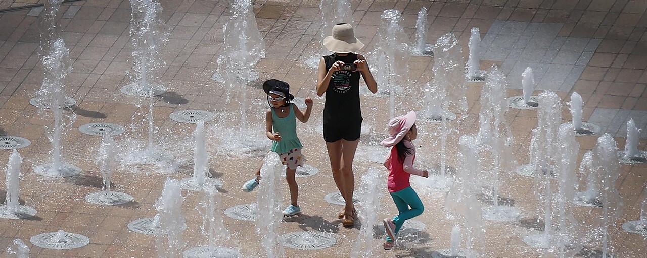망설임도 잠시, 분수 한가운데로 들어간 엄마는 아이들과 함께 온몸에 물을 맞으며 아이들 모습을 연신 휴대전화 카메라에 담는다. 자기 주위를 뱅뱅 돌며 뛰노는 아이들을 찍느라 집중한 엄마도 이들을 쫓아 돈다. 이 모습이 흡사 3인조 걸그룹의 군무를 보는 듯하다.
