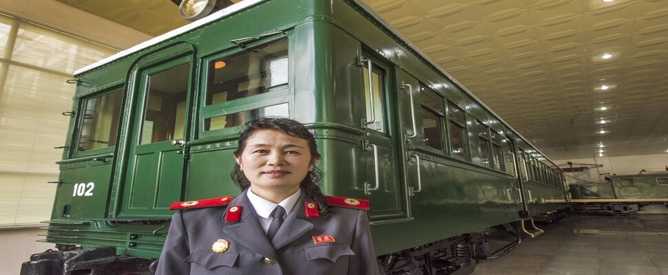 평양역 가까이에 있는 철도성혁명사적관에 일본이 식민지배를 하던 시절 운용하던 철도 차량이 전시돼 있다. 본관 옆 ‘차량관’ 입구에 들어서면 바로 보이는 녹색의 여객 차량은 금강산 관광을 위해 ‘금강산전기철도’가 도입한 것이다. 1930년대에 제조된 것으로 보인다.