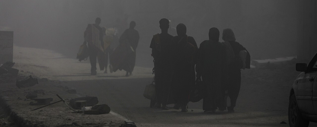 2025년 9월21일 팔레스타인 가자시티에서 이스라엘의 공습이 시작되자 주민들이 대피하고 있다. 2023년 10월 개전 이후 가자지구에서 팔레스타인 주민 6만5천여 명이 사망했다. EPA 연합뉴스