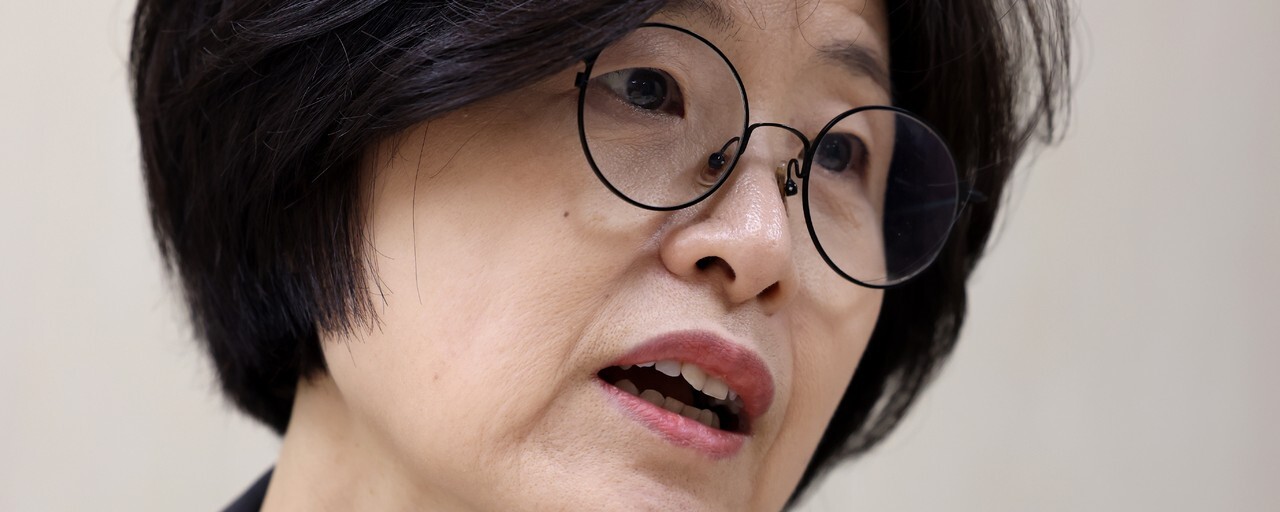 김양희 교수가 2025년 4월29일 서울 마포구 한겨레신문사에서 한겨레21과 인터뷰하고 있다. 사진 류우종 기자