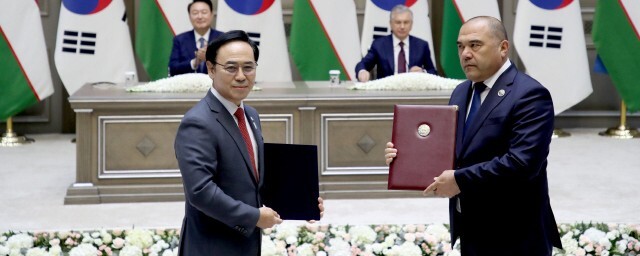 이날 서명식 기념사진에 함께 찍힌 건 다름 아닌 윤석열이다. 이 서명식은 한·우즈베키스탄 협정 업무협약 서명식과 함께 진행됐고, 샵카트 미르지요예프 우즈베키스탄 대통령도 자리에 함께했다. 윤석열이 성과를 과시하기 위해 1년 전부터 추진된 사업의 서명식을 순방 일자에 맞춘 것으로 보인다.
