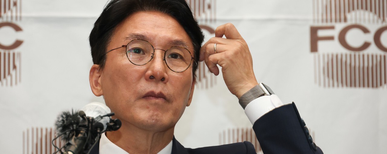 김민석 국무총리 후보자가 2025년 6월17일 서울 중구 한국프레스센터에서 열린 외신기자 간담회에 참석해 머리를 넘기고 있다. 연합뉴스