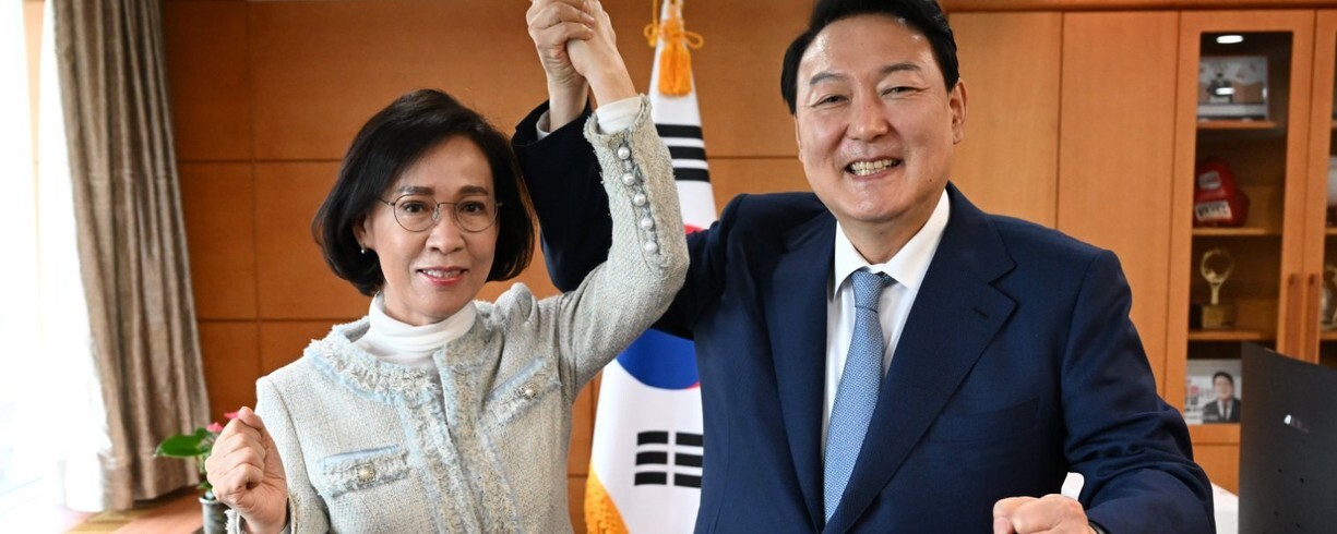 이인선 국민의힘 대구 수성을 의원이 대통령직인수위 시절 윤석열 당선인과 포즈를 취하고 있다. 이인선 의원 페이스북 갈무리