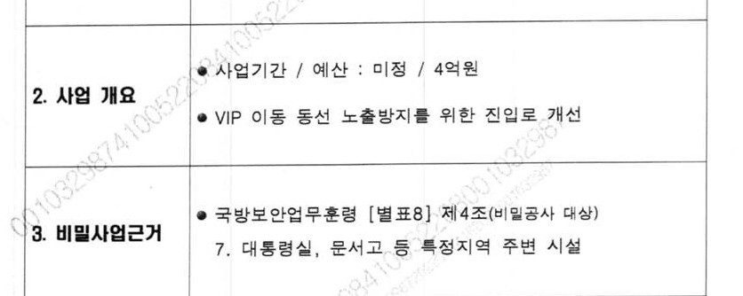 “브이아이피(VIP) 이동 동선 노출방지를 위한 진입로 개선.”