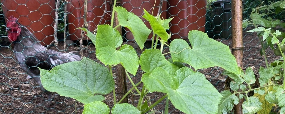 늦게 심은 토종 오이가 비를 맞으며 무럭무럭 자라고 있다.
