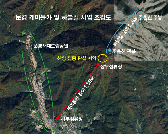 문경시는 상부정류장과 중간지주에 설치한 카메라에서 산양 흔적이 발견되지 않았고, 사업지구 일대에서 담비의 서식 흔적이 발견된 것으로 미뤄볼 때 산양 개체군이 사업지구로 유입될 가능성이 작다고 판단했다. 대구지방환경청은 결국 “담비의 흔적만으로 산양의 서식지를 제한하는 것이 타당하지 않다”고 지적하면서도 “종합적으로 검토해 산양에 대한 영향 저감 방안을 확대 수립하라”며 협의 의견을 내줬다.