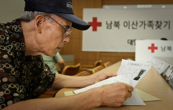 남북이 적십자회담을 통해 이산가족 추석 상봉행사를 9월26일부터 10월1일까지 금강산에서 열기로 합의했다. 8월28일 오전 서울 중구 대한적십자사 이산가족방문단 민원실에서 이번 추석 이산가족 상봉 예비후보자 추첨이 진행됐다. 김춘근(85) 할아버지는 ‘이산가족 찾기 신청서’에 혹시라도 잘못 적은 것은 없는지 한참을 살펴봤다. 할아버지는 함경남도 원산 동해중학교 교사로 재직하다 한국전쟁 때 혼자 남쪽으로 내려왔다. 할아버지는 피난 당시의 사연을 하염없이 풀어놓았다. 문득 “괜한 소리를 늘어놨다”며 돌아서는 할아버지의 발길이 무겁다. 살아생전 가족 한 번 만나기 위해 오늘도 이곳을 찾았지만, 그날이 언제가 될지 알려주는 이는 오늘도 없었다. 현재 이산가족 1세들은 약 30만 명이 생존해 있다.
