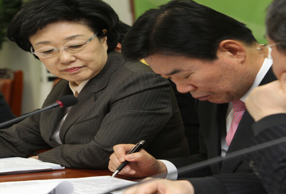 민주통합당은 김진표 의원이 ‘재벌의 X맨’이라는 비판이 높은데도 단수 공천해 트위터 등에서 논란이 일었다. <한겨레> 이정우