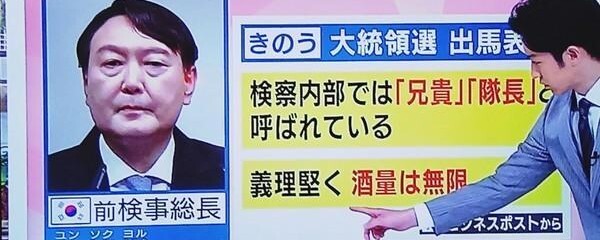 일본 TV아사히가 윤석열 대통령의 주량을 ‘무한’으로 소개하고 있다. 화면 갈무리
