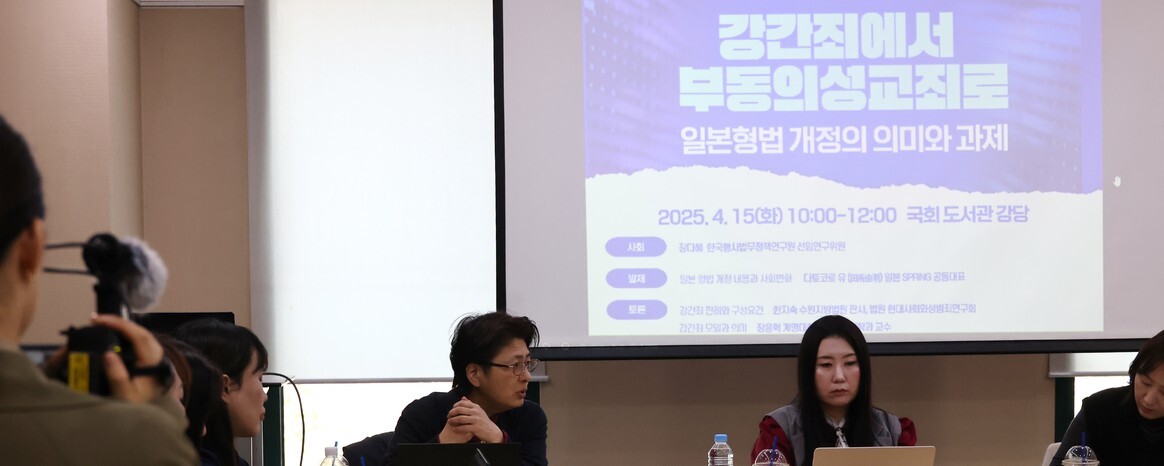 이처럼 일본 형법에 ‘부동의성교죄’(비동의강간죄 또는 비동의간음죄)가 도입될 수 있도록 법 개정을 주도한 일본 시민단체 ‘스프링’(SPRING) 활동가들이 2025년 4월15일 한국을 찾았다. 스프링은 성폭력 피해자의 얼어붙은 마음에 봄이 오기를 바라는 마음이 주춧돌이 되어 2017년 7월 설립된 단체다. “형법 개정은 성폭력 피해로 힘들어하는 많은 분의 목소리를 토대로 이뤄졌습니다. 여기 한국에서도 (그와 같은) 큰 변화가 일어날 수 있다는 희망을 여러분과 함께 공유하고 싶습니다.” 다도코로 유우 스프링 공동대표가 4월15일 서울 영등포구 국회도서관 강당에서 열린 토론회 ‘강간죄에서 부동의성교죄로–일본 형법 개정의 의미와 과제’에서 일본 형법 개정 과정과 그 내용, 그에 따른 사회 변화를 참석자들에게 알렸다.