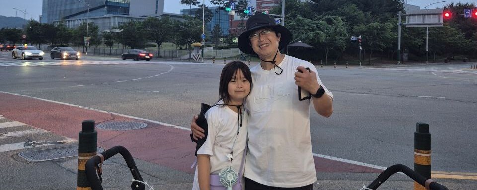 의료사각지대에 놓인 1형당뇨인 현실을 알리기 위해 박근용씨(오른쪽)와 9살 율아가 세종에서 서울까지 도보 행진을 하는 모습. 사진 박근용씨 제공