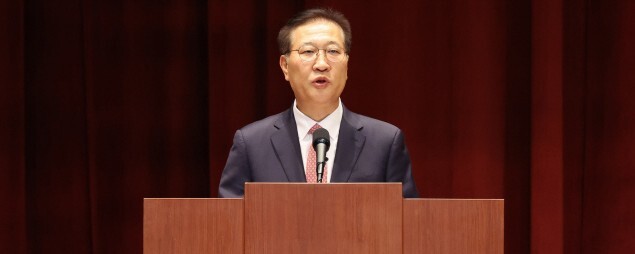 박성재 전 법무부장관이 2025년 6월5일 오전 경기 과천시 정부과천청사에서 열린 이임식에서 이임사를 하고 있다. 신소영 기자 viator@hani.co.kr