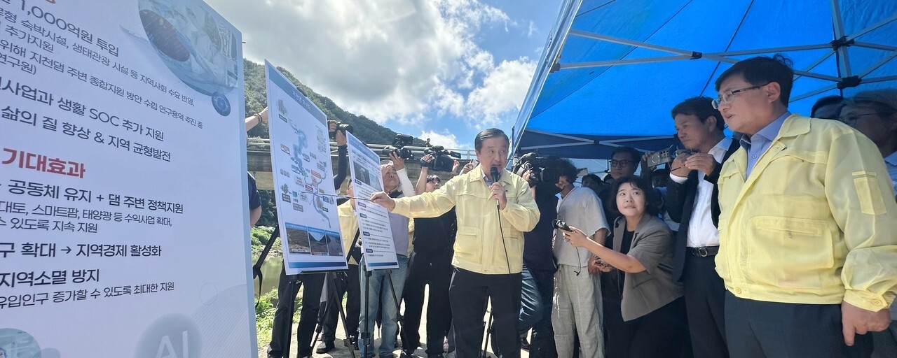 2025년 8월29일 오후 1시25분, 김성환 환경부 장관이 죽림리 지천을 찾았습니다. 김 장관이 이곳을 방문한 것은 댐 입지와 여론 등을 살펴 댐 건설을 할지 말지를 결정하기 위해서입니다.