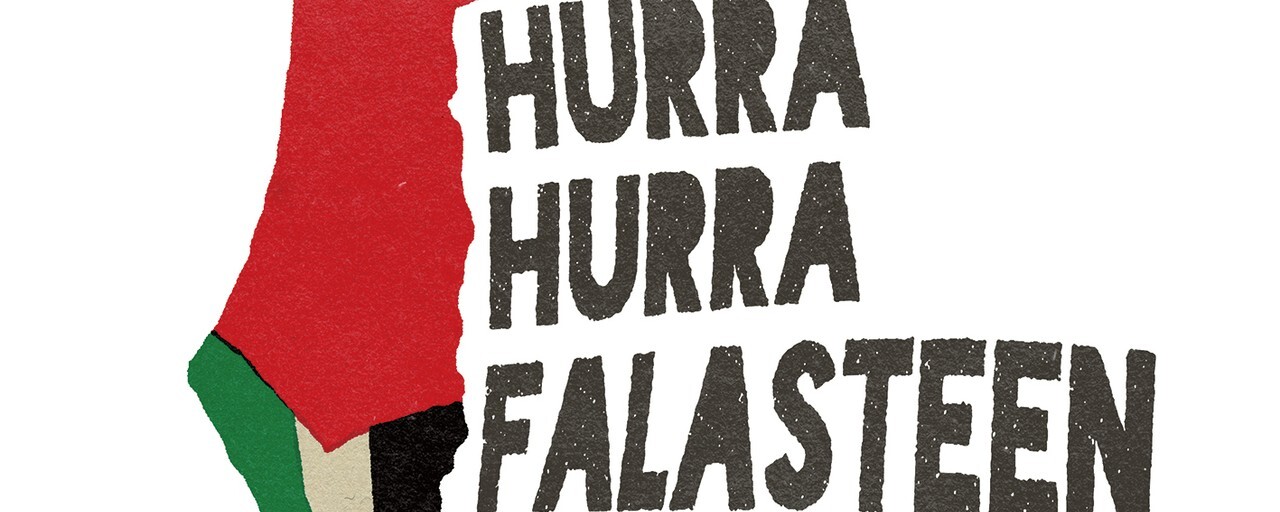 “حرة، حرة، فلسطين(후라 후라 팔라스틴!)”(팔레스타인에 해방을!)