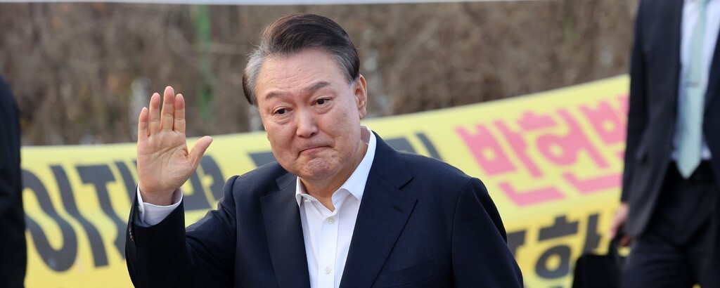 윤석열이 2025년 3월8일 오후 경기 의왕시 서울구치소에서 석방돼 지지자들에게 인사하며 걸어나오고 있다. 한겨레 김영원 기자