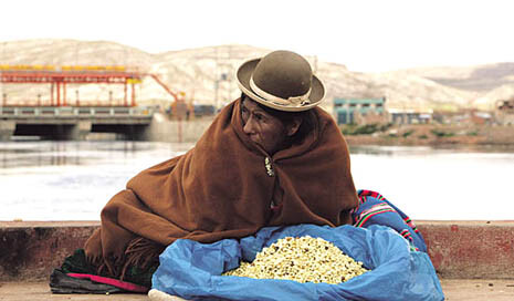 마을 한 가운데를 흐르는 작은 개울이 볼리비아와 페루를 가르는 국경이다. 다리 위에 세명의 촐리타(원주민 여자)가 땅콩을 팔고 있었다. 손님이 없어 뜨개질을 하고 있던 한 촐리타는 “10년째 여기서 일했다. 하루에 20~30볼리비아노를 번다”고 말했다. 볼리비아에서 일반 노동자의 일당이 3달러(25볼리비아노)가량이므로, 비슷하다. 양말을 신지 않은 촐리타들은 하나같이 이를 새로 해넣었다. 어려서부터 청량음료에 찌들어사는 볼리비아인 중에서 이가 성한 사람을 찾기는 쉽지 않다.
