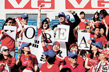 그렇지만 경기장 밖은 ‘대~한민국’을 외치는 붉은 악마와 교민들의 외침으로 달아올랐다. 현지 유학생과 교민, 현지로 직접 건너온 축구 동호인 클럽 회원 등 250여 명은 본부석 오른쪽 골대 뒤편에 자리잡은 뒤 작은 규모지만 단결된 응원전을 펼쳤다. 지난해부터 오슬로에서 살고 있다는 신명선(45)씨는 “오래전부터 한국 대표팀이 이곳에 온다는 소식을 전해듣고 가슴이 설다”고 말했다. 경기장으로 들어서는 취재진에게 다가온 김영호(36)씨는 “아직도 표를 구할 수 있느냐”고 물었다. 경기장 밖에서 암표가 거래되는 모습이었지만, 그가 경기장에 들어와 경기를 관전했는지는 알 수 없다.