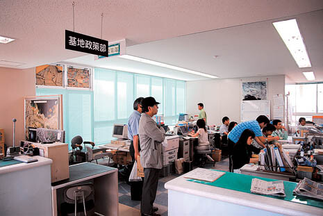 시청에는 ‘기지정책부’라는 이름의 미군기지 전담부서가 있다. 이곳에는 약 20명의 공무원들이 배치돼 기지 관련 민원과 사건·사고를 처리한다. 시청 3층에 자리잡은 사무실에는 직원들의 책상 주변으로 기지에 관련된 지도와 위성사진들이 배치돼 있었고, 사무실 한쪽의 자료실에는 기지에서 이착륙하는 미군 해병대 소속의 전투기와 군용기·헬기 등의 모형이 만들어져 있었다. 군용기 모형까지 구해 진열한 이유는 “어떤 비행기가 어떤 문제를 일으키는지 소상히 알기 위해서”라고 했다. 군사박물관을 연상시키는 구체적인 접근법이 인상적이었다.