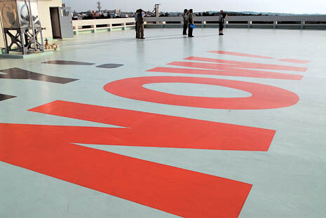 공무원들이 직접 그려놓은 “DON’T FLY OVER OUR CITY! U.S. HELOs GET OUT NOW”란 표어가 비행기에서 내려다볼 수 있을 만큼 큰 글씨로 쓰여 있다. 계속되는 비행훈련으로 다른 지역보다 난청 환자가 2~3배 많다는 기노완시에서 시민들의 민원에 적극 대응하고 있다는 상징적인 표시다.