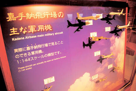 이런 접근법은 앞서 언급한 기노완시에서도 찾아볼 수 있었다. 기노완시 남부 도심공원에는 기지를 한눈에 관찰할 수 있는 전망대가 조성돼 있다. 푸른 지구를 상징화한 둥근 전망대의 계단을 올라서면 북을 향해 뻗은 후텐마 기지가 내려다보인다. 전망대 안내판을 보면 기지 안에 있는 미군 전투기의 기종을 확인할 수 있다.