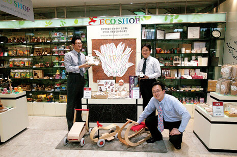 롯데백화점에 근무하는 박상호(34) 과장은 사람들을 만나 명함을 내밀 때마다 어깨가 ‘으쓱’하다. ‘Think Tomorrow’(내일을 생각한다)라는 슬로건이 작은 새 그림과 함께 인쇄된 명함은 재생지로 만든 것이다. 박 과장이 근무하는 부서는 환경가치경영사무국이다. 마케팅부문 소속이지만 이름 그대로 ‘그린 마케팅’을 연구하고 기획·집행하는 부서라는 점에서 기업의 ‘환경 마인드’를 상징한다는 자부심이 있다.