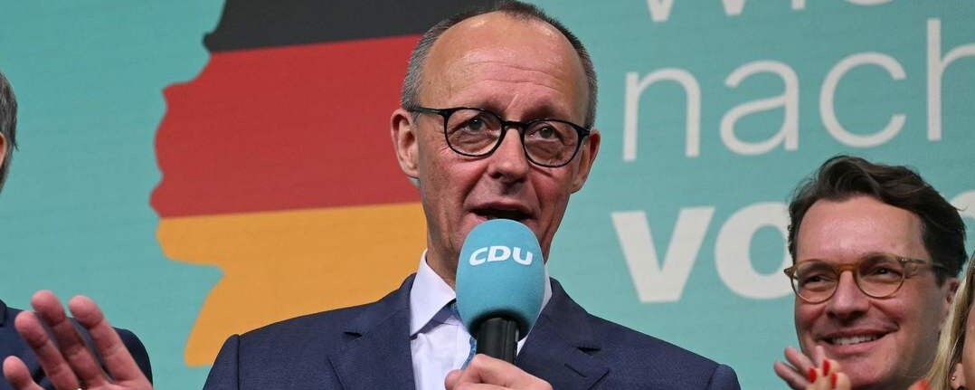 차기 독일 총리로 유력한 프리드리히 메르츠 기독교민주연합(CDU) 대표가 2025년 2월23일 총선 출구조사 발표 직후 베를린의 당사에서 연설하고 있다. AFP 연합뉴스