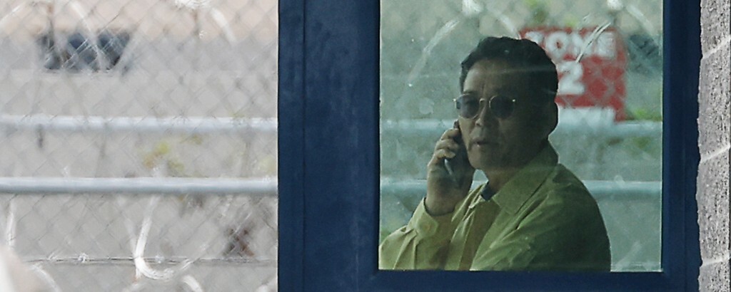 조기중 미국 워싱턴 총영사가 2025년 9월9일(현지시간) 미국 당국의 이민단속으로 체포된 현대차-LG엔솔 배터리공장 건설 현장 직원들이 수감돼 있는 조지아주 포크스턴의 이민세관단속국(ICE) 구금시설 인근에서 통화를 하고 있다. 연합뉴스
