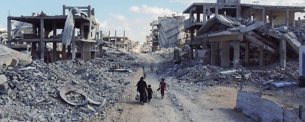 2025년 10월18일 팔레스타인 땅 가자지구 북부 가자시티에서 주민들이 폐허가 된 거리를 지나고 있다. REUTERS 연합뉴스