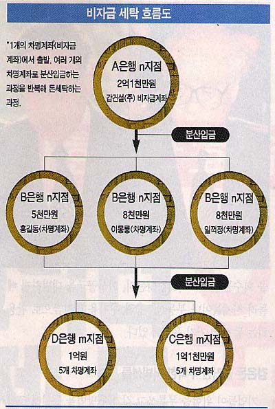 ¸®º£ÀÌÆ® µî ºÎÁ¤±â ¼öÀÔ±ÝÀ» º°µµ °ü¸®ÇÏ´Â °Íµµ ºñÀÚ±ÝÀ» ¸¸µå´Â ÁÖ¿ä Åë·Î·Î ²ÅÈù´Ù. ÇÏû¾÷ü·ÎºÎÅÍ ¹Þ´Â ³ú¹°µµ ¿©±â¿¡ Æ÷ÇԵȴÙ. ÇÏû¾÷ü µîÀ¸·ÎºÎÅÍ ¹ÞÀº ³ú¹° ÀϺδ Á¤¡¤°ü°è¿¡ ³ú¹°·Î ¹ÙÃÄÁ® ºñÀÚ±Ý À¯ÅëÀÇ °ËÀº °í¸®¸¦ Çü¼ºÇÑ´Ù. µ¿¾Æ°Ç¼³ ºñÀÚ±Ý »ç°ÇÀº ÀüÇüÀûÀÎ ¿¹´Ù. Áö³ 4¿ù ÃѼ±À» ¾ÕµÎ°í ´ç½Ã °íº´¿ì ȸÀå µî µ¿¾Æ°Ç¼³ °æ¿µÁøÀº 14°³ °è¿»ç¸¦ ¸Å°¢ÇÏ´Â °úÁ¤¿¡¼ »ó´ë ¾÷ü·ÎºÎÅÍ ¸®º£ÀÌÆ®¸¦ ¹Þ¾Æ ¼ö½Ê¾ï¿ø´ëÀÇ ºñÀÚ±ÝÀ» Á¶¼ºÇÑ °ÍÀ¸·Î µå·¯³µ´Ù. ÀÌ·¸°Ô Á¶¼ºÇÑ ÀÚ±ÝÀº Á¤Ä¡±Ç Àλçµé¿¡°Ô »Ñ·ÁÁø °ÍÀ¸·Î ÆÄ¾ÇµÇ°í ÀÖ´Ù. ±ÝÀ¶½Ç¸íÁ¦ ½Ç½Ã µÚºÎÅÍ °¡Àå ¸¹ÀÌ ¾²ÀÌ´Â ¹æ¹ýÀº ÀÌÀü°¡°Ý Á¶ÀÛÀÎ °ÍÀ¸·Î ÃßÁ¤µÇ°í ÀÖ´Ù. ÀÌ´Â ÇØ¿ÜÁö»ç(ÇöÁö¹ýÀÎ)¸¦ ÅëÇØ ¹°°ÇÀ» µé¿©¿Ã ¶§ ´Ü°¡¸¦ ½ÇÁ¦º¸´Ù ³ô°Ô Ã¥Á¤, º»»ç¿¡¼´Â ½ÇÁ¦ ±Ý¾×¸¸ Áö±ÞÇÏ°í ³ª¸ÓÁö´Â »©µ¹¸°´Ù. ¹Ý´ëÀÇ ¹æ¹ýÀ» ¾²¸é ÇØ¿Ü·Î µ·À» »©µ¹¸®´Â ¼ö´ÜÀÌ µÈ´Ù. ´ë¿ì±×·ìÀÌ ¿µ±¹ ·±´øÀÇ (ÁÖ)´ë¿ì ¿ª¿Ü±ÝÀ¶Ã¢±¸ÀÎ BFC(British Finance Center)¸¦ ÅëÇØ ºÒ¹ý°ü¸®Çؿ 75¾ï´Þ·¯ÀÇ ÀÚ±Ý ¶ÇÇÑ ÀÌ·± À¯ÇüÀÇ ºñÀÚ±ÝÀ̶õ ÇøÀǸ¦ ¹Þ°í ÀÖ´Ù. ÀÌ ¹Û¿¡µµ ºñÀÚ±ÝÀ» Á¶¼ºÇÏ´Â ¹æ¹ýÀ¸·Î ȸ¼ö°¡´É ä±ÇÀ» ȸ¼öºÒ´ÉÀ¸·Î ó¸®ÇÑ´ÙµçÁö, ȸ»ç°ø±ÝÀ» ´ë¹üÇÏ°Ô »©µ¹·Á »çä³îÀ̳ª ºÎµ¿»ê¡¤Áõ±Ç ÅõÀÚ¿ë ºñÀÚ±ÝÀ¸·Î Ȱ¿ëÇÏ´Â µî ¿©·¯ °¡Áö À¯ÇüÀÌ ÀÖ´Ù.
