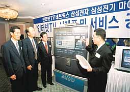 Ȩ³×Æ®¿öÅ©ÀÇ ÇÙ½ÉÀº ¹¹´Ï¹¹´Ï ÇØµµ ÀÎÅÍ³Ý TV´Ù. »ï¼ºÀüÀÚ µðÁöÅа¡ÀüÃѰýºÎ¹®ÀÇ ÇÑ °ü°èÀÚ´Â ¡°Áö±Ý±îÁö PC°¡ ÀÎÅͳÝÀÇ Áß½ÉÀ̾ú´Ù¸é ¾ÕÀ¸·Î´Â ³²³à³ë¼Ò ¸ðµÎ¿¡°Ô °¡Àå Ä£¼÷ÇÑ TV°¡ µÉ °Í¡±À̶ó°í ¸»ÇÑ´Ù. »ï¼ºÀüÀÚ´Â Áö³´Þ ÀÎÅͳݹæ¼Û ¼ö½Å¿ë ¼ÂÅé¹Ú½º°¡ ³»ÀåµÈ ÀÎÅÍ³Ý TV Á¦Ç° ¹ßǥȸ¸¦ °¡Á³´Ù. ÀÌ ½ÅÁ¦Ç°Àº ¹æ¼Û ½Ãû°ú ÀÎÅÍ³Ý ÀÌ¿ëÀÌ µ¿½Ã¿¡ °¡´ÉÇÏ´Ù. ÃÖ±Ù 500¿©°³¸¦ ³Ñ´Â ÀÎÅͳݹæ¼ÛÀº ¹°·ÐÀÌ°í °¢Á¾ VOD¿µÈ, ¸ÖƼ¹Ìµð¾î ±³À° ¹× Ȩ¼îÇÎ µîÀ» ½ÃûÇÒ ¼ö ÀÖ´Ù. ¶Ç ÄÄÇ»ÅÍ¿¡¼³ª °¡´ÉÇÏ´ø À¥¸ÞÀÏ ¹æ½ÄÀÇ ÀüÀÚ¿ìÆí, ¹®¼ÀÛ¼º°ú ÇÁ¸°Æ® ±â´É µîÀ» Áö¿øÇÔÀ¸·Î½á Ȩ¼¹öÀÇ ±â´ÉÀ» ¸Ãµµ·Ï Çß´Ù. ÀÌ ¹Û¿¡ ±¹³» Áõ±Ç»ç¿Í ÀºÇàµé°ú Á¦ÈÞ¸¦ ¸Î°í ȨƮ·¹À̵ù, Ȩ¹ðÅ·À» TV¸¦ ÅëÇØ ½Ç½ÃÇÏ´Â ¡®T-ÄÚ¸Ó½º¡¯ ¼ºñ½º¸¦ ¹ÞÀ» ¼ö ÀÖµµ·Ï Çß´Ù. ´ë¿ìÀüÀÚµµ Áö³ 97³âºÎÅÍ ÀÌ¹Ì ÀÎÅÍ³Ý TV¸¦ Ãâ½ÃÇß´Ù. ¹«¼± Űº¸µå³ª ¹«¼± ¸®¸ðÄÜÀ» ÅëÇØ ÀÚÀ¯·Ó°Ô À¥¼ÇÎÀ» Áñ±æ ¼ö ÀÖ´Â Á¦Ç°ÀÌ´Ù. ¹Ì±¹¿¡´Â ÀÌ¹Ì ¼öÃâ¿¡ ¼º°øÇß°í ±¹³»¿¡¼µµ ¿Ã °¡À»ºÎÅÍ Ãâ½ÃÇÑ´Ù´Â °èȹÀÌ´Ù. ÀÌ ¹Û¿¡ ¼¼Å¹±â·Î´Â »ï¼ºÀüÀÚ°¡ Áö³´Þ Áß¼ø ½ÃÀå¿¡ ¼±ºÈ ¡®ÆÄ¿öµå·³ ¼¼Å¹±â¡¯°¡ ÀÖ´Ù. ¼¼Å¹±â Á¶ÀÛÆÇ¿¡ ¿ª½Ã LCDȸéÀÌ ÀÖ¾î À̸¦ ÅëÇØ ÀΰøÁö´É ½Ã½ºÅÛÀ» °£´ÜÈ÷ Á¶ÀÛÇØ µÎ¸é »¡·¡°¨ÀÇ Æ¯¼º¿¡ µû¶ó ¹° ¿Âµµ, ȸÀü¹æÇâ, ȸÀü¼Óµµ¸¦ ÃÖÀûÀ¸·Î Á¦¾îÇØÁÖ´Â µðÁöÅÐ½Ä °¡ÀüÁ¦Ç°ÀÌ´Ù. ƯÈ÷ ¼¼Å¹Åë°ú ¼¼Å¹ÆÇÀÇ ¿îµ¿¹æ½ÄÀÌ ´Üµ¶È¸Àü ¶Ç´Â Á¤È¸Àü ¹æ½Ä¿¡¼ »óÈ£ ¿ªÈ¸ÀüÇÔÀ¸·Î½á 334°¡Áö ´Ù¸¥ ¹°»ìÀ» ¸¸µé¾î³½´Ù.
