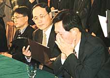 ÇѺ¸Ã¶°ÀÇ ¸Å°¢ÀÚ¹®À» ¸ÃÀº ¹ý¹«¹ýÀÎ ¿ì¹æÀÇ Ãֽ¼ø º¯È£»ç´Â ¡°Ã¤±Ç´ÜÀº ä±Çȸ¼ö¿Í °øÀåÀÇ Á¤»óȸ¦ À§ÇØ ¸Å°¢À» ½Å¼ÓÈ÷ ÃßÁøÇÒ °Í¡±À̶ó¸ç ¡°ÇöÀç ÇѺ¸Ã¶°ÀÇ AÁö±¸ ºÀ°°øÀåÀÌ Á¤»ó ¿î¿µµÇ°í Àִµ¥´Ù ¿©À¯Àڱݵµ 320¿øÀ̳ª ÀÖ¾î ¿À´Â 2003³â±îÁö ½Å±ÔÀÚ±Ý Áö¿øÀÌ ÇÊ¿ä¾ø±â ¶§¹®¿¡ ¼µÑ·¯ Çæ°ª¿¡ ¸Å°¢ÇÏÁö´Â ¾ÊÀ» °Í¡±À̶ó°í ¼³¸íÇß´Ù. ´ë¿ìÂ÷³ª ÇѺ¸Ã¶° ¹®Á¦´Â ¸ðµÎ ´ë´ÜÈ÷ ¾î·Á¿î °úÁ¦ÀÌ´Ù. ¼ÖÁ÷È÷ ¸»ÇØ »ÏÁ·ÇÑ ÇØ¹ýÀÌ ¾ø´Ù´Â °Ô Á¤´ä ¾Æ´Ñ Á¤´äÀÌ´Ù. ÀÌ·± ¿ÍÁß¿¡ Á¤ºÎ´Â ÀϺΠ¾ð·ÐÀÇ ¸¶³à»ç³É½Ä ¹®Á¦ Á¦±â¿¡ ÈÛ¾µ·Á ´ë¶ä ¡®¸Å°¢½ÇÆÐ Ã¥ÀӷС¯À» µé°í³ª¿Í ¹®Á¦¸¦ ´õ¿í ²¿ÀÌ°í ¸¸µé¾ú´Ù. ¡°(´ë¿ìÀÚµ¿Â÷¿Í ÇѺ¸Ã¶°ÀÇ °è¾àÆÄ±â »çÅ¿¡ ´ëÇØ) À̰ÍÀº ´©°¡ ºÁµµ ÂüÀ¸·Î ¾î󱸴Ͼø´Â ÀÏÀÌ´Ù. °æÀ§¿Í °á°ú¸¦ ¾ö¹ÐÈ÷ Á¶»çÇØ °è¾à °ü·ÃÀÚµéÀÇ Ã¥ÀÓÀ» Áö¿ìµµ·Ï ÇÏ´Â °ÍÀÌ ¿Ç´Ù°í »ý°¢ÇÑ´Ù.¡±(±è´ëÁß ´ëÅë·É, 10¿ù4ÀÏ 4´ëºÎ¹® °³Çõ°úÁ¦ ÇÕµ¿º¸°íȸÀǸ¦ ÁÖÀçÇÑ ÀÚ¸®¿¡¼). ¡°´ë¿ìÂ÷ ¸Å°¢ ½ÇÆÐÀÇ ¿øÀÎÀÌ Æ÷µå ÀÚü »çÁ¤¿¡µµ ÀÖ´Ù°í º¸Áö¸¸ Ã¥ÀÓÀ» ¹°À» ÀÏÀÌ ÀÖ´Ù¸é ¹¯°Ú´Ù. ÇѺ¸Ã¶° ¸Å°¢ÀÌ ½ÇÆÐÇÑ µ¥ ´ëÇØ¼µµ À̹øÁ־ȿ¡ Á¤ºÎ¿Í ä±Ç´Ü¿¡ ´ëÇØ Ã¥ÀÓÃß±ÃÀÌ ÀÌ·ïÁú °ÍÀÌ´Ù.¡±(Áø³ä ÀçÁ¤°æÁ¦ºÎ Àå°ü, 10¿ù5ÀÏ ±âÀÚ°£´ãȸ). ¡°´ë¿ìÂ÷ÀÇ °æ¿ì ¿ÀÈ£±Ù ´ë¿ì±¸Á¶Á¶Á¤ÃßÁøÇùÀÇȸ ÀÇÀåÀÌ ¸Å°¢Çù»óÀ» ÁÖµµÇÑ ¸¸Å Çù»ó °úÁ¤¿¡ À߸øÀ̳ª ½ÇÃ¥Àº ¾ø¾ú´ÂÁö¸¦ È®ÀÎÇϰí ÀÖ´Ù. Á¶»ç°á°ú Çù»ó °úÁ¤¿¡¼ ÇöÀúÇÑ ½ÇÃ¥À̳ª À߸øÀÌ µå·¯³¯ °æ¿ì ´ë¿ì±¸Á¶Á¶Á¤ÇùÀÇȸ¸¦ ÇØ»êÇϰųª ¿ÀÈ£±Ù ÀÇÀåÀÇ ÇØÀÓÀ» °ËÅäÇÒ ¼ö ÀÖÀ» °ÍÀÌ´Ù.¡±(±ÝÀ¶°¨µ¶À§¿øÈ¸ °íÀ§°ü°èÀÚ, 10¿ù5ÀÏ).