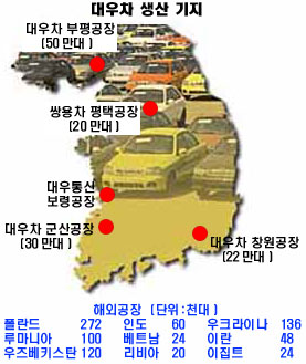 ´Ù¸¥ ÇØ¿ÜÁö¿ªÀÇ »çÁ¤µµ Å©°Ô ´Ù¸£Áö ¾Ê´Ù. Áß±¹°ú ÀϺ»¿¡´Â GMÀÌ ÀÌ¹Ì ÇöÁö¿¡ ÇÕÀÛ°øÀåÀ» ¼³¸³Ç߰ųª ÇöÁö¾÷ü¿Í ´ë°Å Á¦ÈÞ°ü°è¸¦ ¸Î°í ÀÖ°í ¿ìÅ©¶óÀ̳ª¿Í ¿ìÁũ °øÀåÀÇ °æ¿ì »ç¾÷¼ºÀÌ ³ôÁö ¾Ê¾Æ Àμö´ë»ó¿¡ Æ÷Ç﵃ °¡´É¼ºÀÌ ³·´Ù´Â ÁöÀûÀÌ´Ù. GMÀÇ ÁÖµÈ °ü½ÉÀÌ Çѱ¹½ÃÀå ÀÚü¿¡¸¸ ÀÖ´Ù´Â ºÐ¼®Àº °ú°Å GMÀÌ º¸¿©ÁØ ÇàÅ¿͵µ ¸Æ¶ôÀÌ ´ê¾Æ ÀÖ´Ù. ÀÌ´Â GMÀμö¿¡ µû¸¥ ´ë¿ìÂ÷ÀÇ ¾Õ³¯, ³ª¾Æ°¡ Çѱ¹ ÀÚµ¿Â÷»ê¾÷ÀÇ ¹Ì·¡¿¡ ´ëÇÑ ¾îµÎ¿î Àü¸ÁÀ¸·Î À̾îÁø´Ù. ¹°·Ð ±×µ¿¾ÈÀÇ ´ë¿ìÂ÷ ½ÇÆÐ ¿øÀÎÀ» ¿ÂÅë GM¿¡¸¸ µ¹¸± ¼ö´Â ¾ø´Ù. GM°ú °áº°ÇÑ µÚ¿¡ ³ªÅ¸³ ´ë¿ìÀÇ ¹«¸®ÇÑ È®Àå°æ¿µµµ ½ÇÆÐ ¿øÀÎÀÌ´Ù. ´ë¿ì´Â GM°ú µîÀ» µ¹¸° µÚ ³»¼ö½ÃÀå¿¡¼ ¹«ÀÌÀÚÇÒºÎÆÇ¸Å¸¦ ÁÖµµÇÏ¸ç ½ÃÀåÁ¡À¯À²À» ¿Ã¸®·Á°í ¾È°£ÈûÀ» ½è´Ù. ÇÑÆíÀ¸·Î ¡®¼¼°è°æ¿µ¡¯À» Ç¥¹æÇÏ¸é¼ ¼¼°è °¢Áö¿¡ ¿Ï¼ºÂ÷ Á¶¸³°øÀå°ú ¿£Áø°øÀåÀ» °Ç¼³Çϰí ÃâÇ÷ÆÇ¸Åµµ ºÒ»çÇÏ´Â ´ë·®¼öÃâ Àü·«À» °¨ÇàÇÑ´Ù. ÀÌ·± È®ÀåÁöÇ⠰濵Àº °á±¹ ±¹Á¦Åëȱâ±Ý(IMF) »çÅ¿¡ ¸Â´Ú¶ß·Á ±Ø½ÉÇÑ ÀڱݳÀ¸·Î À̾îÁö°í ä±Ç´Ü¿¡ ÀÇÇÑ ±â¾÷°³¼±ÀÛ¾÷(¿öÅ©¾Æ¿ô)¿¡ Ã³ÇØÁö´Â ¿î¸í¿¡ Ã³ÇØÁö°Ô µÈ´Ù. ´ë¿ì´Â ÀÚüÁ¦Ç° °ø¹éÀ» ÃÖ´Ü ±â°£ ¾È¿¡ ¸Þ¿î´Ù´Â Àü·« ¾Æ·¡ ¶ó³ë½º(96³â), ´©ºñ¶ó¡¤·¹°£ÀÚ(97³â)¿¡ À̾î 98³â¿¡´Â È÷Æ® ¸ðµ¨ÀÎ ¸¶Æ¼Á ³»³õ¾Æ Á¦Ç°°ø¹éÀ» ¾î´À Á¤µµ ¸Þ¿ü´Ù. ÀÌ·± ºÎºÐÀûÀÎ ¼º°ø¿¡µµ ºÒ±¸ÇÏ°í »ý»ê¡¤±â¼ú ´É·Â ºÎÁ·ÀÇ ÇѰ踦 ³Ñ¾î¼Áö´Â ¸øÇß´Ù. ÀÌ´Â ´ë¿ìÀÇ °Á¡ÀÎ ¸¶ÄÉÆÃ°ú ¿µ¾÷´É·Â¸¸À¸·Ð ±Øº¹ÇÒ ¼ö ¾ø´Â Ä¡¸íÀûÀÎ ¾àÁ¡À̾úÀ¸¸ç GM°ú ÇÕÀÛÇÑ ±â°£ Áß¿¡ »Ñ·ÁÁø ¾¾¾Ñ¿¡¼ ¹èÅÂµÈ °ÍÀ̱⵵ Çß´Ù. ´ë¿ìÂ÷ÀÇ ½ÇÆÐ ¿øÀÎÀÌ ¿Ü°ß»ó ¾çÀû ½ÅÈ¿¡ ¸Å¸ôµÈ ´ë¿ìÀÇ ¹«¸®ÇÑ Àü·«¿¡¼ ºñ·ÔµÈ °Íó·³ º¸ÀÌÁö¸¸ ±×º¸´Ù ´õ ±íÀº »Ñ¸®´Â °ú°Å GM°úÀÇ µ¿°Å¿¡¼ ãÀ» ¼ö ÀÖ´Ù´Â ¾ê±âÀÌ´Ù. ´ë¿ìÀÚµ¿Â÷ ±â¼ú¿¬±¸¼ÒÀÇ ±è´ëÈ£ °úÀåÀº ¡°Áö³ 92³â±îÁö ´ë¿ìÂ÷°¡ »ý»êÇÑ ¸ðµç ¸ðµ¨Àº GM°ú ±× ÀÚȸ»çµéÀÌ °³¹ßÇÑ °ÍÀ» GMÂÊÀÌ µµÀÔÇÑ °ÍÀ̾ú´Ù¡±¸ç ¡°ÀÌ ¶§¹®¿¡ ´ë¿ì´Â Á¦Ç° ¶Ç´Â ¸ðµ¨À» µ¶ÀÚÀûÀ¸·Î ¼³°è¡¤°³¹ßÇÒ ´É·ÂÀ» °®Ãâ ±âȸ°¡ ÀüÇô ÁÖ¾îÁöÁö ¾Ê¾Ò´Ù¡±°í Æò°¡Çß´Ù.