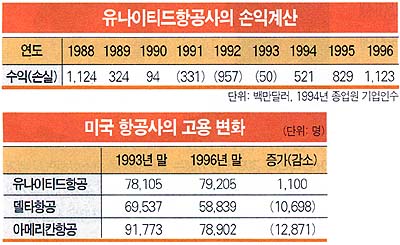 À§¾îÅÏÀº ºÐ»ç ÀÌÈÄ¿¡ ¿©·¯ °¡Áö °æ¿µ½ÇÀû¿¡¼ »ó´çÇÑ ¼º°øÀ» °ÅµÐ °ÍÀ¸·Î Æò°¡µÈ´Ù. À§¾îÅÏÀº Á¾¾÷¿ø Àμö ÀÌÈÄ¿¡ Áö¼ÓÀûÀ¸·Î ÀÌÀ±À» ³»´Ù°¡ 90³â´ë ÃÊ °æ±âħü¿Í ´ë±Ô¸ð ½Å±ÔÅõÀÚ·Î ÀûÀÚ¸¦ ±â·ÏÇßÁö¸¸ 94³âºÎÅÍ´Â ´Ù½Ã ÈæÀÚ·Î µ¹¾Æ¼¹´Ù. °í¿ë±Ô¸ðµµ ºñ½ÁÇÑ Ãß¼¼¸¦ µû¶ú´Ù. À§¾îÅÏÀÇ ³ëÁ¶´Â Á¾¾÷¿øÀÇ 100% ÁÖ½ÄÀμö¸¦ ÅëÇØ °í¿ëÀ» À¯ÁöÇÒ ¼ö ÀÖ¾úÀ» »Ó¸¸ ¾Æ´Ï¶ó °æ¿µ¿¡ Âü°¡ÇÒ ¼ö ÀÖ´Â Åä´ëµµ ¸¶·ÃÇß´Ù. ÀÌ»çȸ´Â °æ¿µÁø°ú ³ëÁ¶¿¡¼ °¢°¢ ¼±ÃâÇÑ µ¿¼öÀÇ ÀÌ»çµé·Î ±¸¼ºµÇ¾ú´Ù. ±×¸®°í ÁֽĻóÀå°ú »ç¾÷ºÎ¹® ¸Å°¢, ÇÕº´ ¹× Àμö¿Í °°Àº ÁÖ¿ä °æ¿µ»ç¾È¿¡ ´ëÇØ¼´Â 1ÀÎ 1Ç¥ÀÇ ¿øÄ¢ ¾Æ·¡ Á¾¾÷¿øµéÀÇ ÅõÇ¥¿¡ ÀÇÇØ °áÁ¤Çϵµ·Ï Çß´Ù. ÁÖ½ÄÀº Àӱݷü¿¡ µû¶ó ºÐ¹èÇϰí Àμö ÀÌÈÄÀÇ ´©ÀûÈæÀÚ°¡ 1¾ï´Þ·¯¸¦ ÃʰúÇÏ¸é ¼¼ÀüÀÌÀ±ÀÇ 33%¸¦ Çö±ÝºÐ¹èÇϰí, 2¾ï5õ¸¸´Þ·¯¸¦ ÃʰúÇϸé 50%¸¦ Áö±ÞÇÑ´Ù´Â Á¶Ç×µµ µÎ¾ú´Ù. 90³â´ë ÃÊ ¹Ì±¹ÀÇ Àü¹ÝÀûÀÎ °æ±âħü´Â Ç×°ø»ê¾÷¿¡ À־µ ÇϳªÀÇ ½Ã·ÃÀ̾ú´Ù. °ÉÇÁÀüÀ¸·Î ÀÎÇÑ À¯°¡»ó½Â°ú °úÀ×°æÀïÀ¸·Î ´ëºÎºÐÀÇ Ç×°ø»çµéÀÌ ÀûÀÚ¿¡ Çã´öÀ̰í ÀÖ¾ú´Ù. ´ç½ÃÀÇ Ç×°ø»ç °æ¿µÁøµéÀº È£ÅÚ¾÷°ú ÀÚµ¿Â÷´ë¿©¾÷ µî »ç¾÷´Ù°¢È·Î µ¹ÆÄ±¸¸¦ ¸ð»öÇߴµ¥, À¯³ªÀÌÆ¼µåÇ×°øÀÇ Á¶Á¾»ç³ëÁ¶´Â º»·¡ »ç¾÷¿¡ ÁýÁßÇϱâ À§Çؼ´Â ȸ»ç¿¡ ´ëÇÑ ÅëÁ¦±ÇÀ» ȹµæÇØ¾ß ÇÑ´Ù°í »ý°¢Çß´Ù. ÀÌ¿¡ µû¶ó À¯³ªÀÌÆ¼µåÀÇ Á¶Á¾»ç³ëÁ¶´Â 87³âºÎÅÍ ESOP¸¦ ÅëÇÑ Á¾¾÷¿øÀμö¸¦ ½ÃµµÇÏ¿´À¸³ª ¼º°øÇÑ °ÍÀº 94³â 7¿ùÀ̾ú´Ù. Á¶Á¾»ç³ëÁ¶¿Í ±â°è°ø³ëÁ¶ÀÇ ÁÖµµ·Î ÀÌ·ç¾îÁø °æ¿µÁø°úÀÇ Çù»ó¿¡¼ Á¾¾÷¿øµéÀº 55%ÀÇ ÁöºÐÀ» Â÷ÁöÇß´Ù. ¶Ç 6³âµ¿¾È °í¿ëÀ¯Áö¸¦ º¸Àå¹Þ¾Ò´Ù. ±â¾÷Áö¹è±¸Á¶µµ ¹Ù²Ù¾ú´Ù. 12¸íÀ¸·Î ±¸¼ºµÈ ÀÌ»çȸ¿¡¼ Á¾¾÷¿øµéÀÌ 3¸íÀ» ¼±ÀÓÇÒ ¼ö ÀÖµµ·Ï Çß°í, ÀÌ 3¸íÀÇ Á¾¾÷¿ø ´ëÇ¥ÀÌ»ç´Â Ç×°ø»ê¾÷ ÀÌ¿ÜÀÇ ´ë±Ô¸ð ÅõÀÚ³ª 2¾ï´Þ·¯ ÀÌ»óÀÇ ÀÚ»ê¸Å°¢¿¡ ´ëÇØ¼´Â °ÅºÎ±ÇÀ» Çà»çÇÒ ¼ö ÀÖ´Â ±ÇÇÑÀ» °¡Á³´Ù. ÁöºÐÃëµæ°ú °æ¿µÂü°¡ÀÇ ´ë°¡·Î ³ëÁ¶°¡ ȸ»ç¿¡ Á¦°øÇÑ ¾çº¸µµ ¸¹¾Ò´Ù. 6³âµ¿¾È 93³â ÀÌÀü Àӱݺ¸´Ù 8.2¡15.7% »è°¨µÈ ¼±¿¡¼ ÀÓ±ÝÀ» µ¿°áÇϰí, °æ¿µÁ¤»óȰ¡ ´Þ¼ºµÉ ¶§±îÁö ÆÄ¾÷À» ÇÏÁö¾Ê±â·Î ¾à¼ÓÇß´Ù.À¯³ªÀÌÆ¼µåÀÇ Á¾¾÷¿ø ±â¾÷Àμö µÚ ¼º°ú´Â ÀμöÀÚüÀÇ °ü½É¸¸ÅÀ̳ª ³î¶ó¿î °ÍÀ̾ú´Ù. ÀÌÀü 3³â°£ÀÇ ÀûÀÚ¿¡¼ 94³âºÎÅÍ °ð¹Ù·Î ÈæÀÚ·Î µ¹¾Æ¼¹´Ù. »Ó¸¸ ¾Æ´Ï¶ó °í¿ë¼öÁصµ Áö¼ÓÀûÀ¸·Î Áõ°¡Çß´Ù. À̰ÍÀº µ¨Å¸Ç×°ø µî °æÀï»çµéÀÇ °í¿ë¼öÁذú ºñ±³Çغ¼ ¶§, ´õ¿í ´ëÁ¶ÀûÀÌ´Ù. ¹«¾ùº¸´Ù Á¾¾÷¿ø ±â¾÷Àμö·Î À¯³ªÀÌÆ¼µåÇ×°ø ³ëÁ¶ÂÊÀº ÀÓ±ÝÁ¶°ÇÀ» ¾çº¸ÇÏ´Â ´ë½Å °í¿ë¾ÈÁ¤°ú ÃÖ°íÀÇ»ç°áÁ¤±â±¸¿¡ Âü¿©ÇÒ ¼ö ÀÖ´Â ±Ç¸®¸¦ ¾ò¾ú´Ù. ±×¸®°í 94³â ÀÌÈÄ 3³âµ¿¾È Á¾¾÷¿øÁÖÁÖµéÀÌ ¿¬Æò±Õ 8%¾¿ÀÇ ¹è´çÀÌÀÍÀ» ¾ò¾î Àӱݻ谨À» ÃæºÐÈ÷ »ó¼âÇÒ ¼ö ÀÖ¾ú´Ù. ȸ»çÀÇ ÁÖÀÎÀ¸·Î¼ Á¾¾÷¿øµéÀÇ ÀÚ¹ßÀûÀÎ ³ë·Â¿¡ µû¶ó ¾òÀº °æ¿µ¼º°ú¸¦ µÇµ¹·Á ¹ÞÀº °ÍÀÌ´Ù. Áö±Ý ¿ì¸®³ª¶ó´Â ´Ù½Ã °æ±âħüÀÇ ÅͳηΠÁ¢¾îµé°í ÀÖ´Ù. À̰ÍÀÌ ¼¼°è °æ±âħü¿Í ¸Â¹°·Á ÀÖ´Â °ÍÀº »ç½ÇÀÌÁö¸¸ IMF ±¸Á¦±ÝÀ¶ ÀÌÈÄ¿¡ ±×µ¿¾È ±¸Á¶Á¶Á¤ÀÌ Á¦´ë·Î ÀÌ·ç¾îÁöÁö ¸øÇÑ °Íµµ ÇÑ ¿äÀÎÀÌ´Ù. ±¸Á¶Á¶Á¤ÀÌ ¿Ö Á¦´ë·Î µÇÁö ¾Ê¾ÒÀ»±î? ±×µ¿¾È ±¸Á¶Á¶Á¤ ¹æ½ÄÀÌ ¸¹Àº ¹®Á¦Á¡À» ¾È°í Àֱ⠶§¹®ÀÌ´Ù. ±¹³» ÀÚ»êÀ» Çæ°ª¿¡ ¿Ü±¹¿¡ ÆÈ¾Æ³Ñ±èÀ¸·Î½á ±¹ºÎ°¡ ¿ÜºÎ·Î À¯ÃâµÇ´Â °æ¿ì°¡ ¸¹¾Ò°í, ȸ»ç°¡ Á¾¾÷¿øµé°ú ÇùÀǾøÀÌ ÀϹæÀûÀ¸·Î ±¸Á¶Á¶Á¤À» ÁøÇàÇÔÀ¸·Î½á ¸¹Àº ³ë»ç´ë¸³ÀÇ »óȲÀ» ÃÊ·¡Çß´Ù. Àοø°¨Ãà À§ÁַΠ¥ÀÎ ±¸Á¶Á¶Á¤¿¡¼ Áß¡¤Àå±âÀûÀÎ ±â¾÷¹ßÀüÀ» ±â´ëÇÒ ¼ö´Â ¾ø´Ù. Á»´õ ±Ùº»ÀûÀÎ ±¸Á¶Á¶Á¤ÀÌ ÀÌ·ç¾îÁöÁö ¾Ê°í¼ ¸î%ÀÇ ÀΰǺñ °¨¼Ò·Î ȸ»ç°¡ ȸ»ýÇÒ ¼ö ÀÖÀ¸¸®¶ó°í ±â´ëÇÏ´Â °ÍÀº »óȲÀ» ³Ê¹« ³«°üÇÑ °ÍÀÌ´Ù. ÀÌ·¯ÇÑ Àǹ̿¡¼ ¹Ì±¹ÀÇ »ç·ÊµéÀº ¿ì¸®¿¡°Ô ½Ã»çÇÏ´Â ¹Ù°¡ Å©´Ù. °æÁ¦Àû ¼º°ú¸¦ Çâ»ó½ÃŰ°í °í¿ëÀ» ¾ÈÁ¤½Ã۸ç ȸ»çÀÇ Àå±âÀûÀÎ ¹ßÀüÀ» ±â´ëÇÒ ¼ö ÀÖ´Â ±¸Á¶Á¶Á¤ÀÇ ÇÑ ¹æ¹ýÀ» Â÷ÀÔ ESOP°¡ Á¦½ÃÇϰí ÀÖ´Ù.