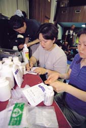 ´Ùµé ¾È¿ÂÇÑ Àú³á½ÄŹÀÌ ±â´Ù¸®´Â ÁýÀ¸·Î ½º¸çµé ±Ý¿äÀÏ Àú³á 8½Ã. º´¿ø¿¡¼, ¾à±¹¿¡¼ ÇǰïÇÑ ÇÏ·çÀϰú¸¦ ¸¶Ä£ ¡®¹ÎÀÇ·Ã ¹ÎÁß¿¬´ëÆÀ¡¯ »ç¶÷µéÀº ÀǾàǰ °¡¹æÀ» ì°Ü ³ó¼ºÀåÀ¸·Î ¹ß°ÉÀ½À» ÀçÃËÇß´Ù. 7¿ù21ÀÏÀº ³ó¼ºÁßÀÎ (ÁÖ)»õÇÑ ³ëµ¿ÀÚµéÀ» ã¾Æ°¡´Â ³¯. ¼µÑ·¯ ¼¿ï ¿µµîÆ÷»ê¾÷¼±±³È¸ 3Ãþ ³ó¼ºÀå¿¡ µµÂøÇß´Ù. »è¹ßÀ» ÇÑ 100¿©¸íÀÇ ³ëµ¿ÀÚµéÀÌ °Ë°Ô ±×À»¸° ¾ó±¼·Î À̵éÀ» ¸Â¾Ò´Ù. ¡°Á¶±ÝÀÌ¶óµµ ÈûÀÌ µÇ°í ½Í¾î ¿Ô½À´Ï´Ù. ¹ÎÀÇ·Ã ¹ÎÁß¿¬´ëÆÀÀå ¹Ú±Õ¹èÀÔ´Ï´Ù.¡± ¡°¹ÎÀÇ·Ã Çлýȸ¿ø Á¶¿µ¹ÎÀÔ´Ï´Ù. ¸¹ÀÌ ¹è¿ì°í °¡°Ú½À´Ï´Ù.¡± ¡°°í»ý ¸¹À¸½ÃÁÒ? ¹ÎÇý°æÀ̶ó°í ÇÕ´Ï´Ù.¡± ¡°¹Ý°©½À´Ïµ¥ÀÌ¡±¶ó¸ç ÁøÇÑ °æ»óµµ »çÅõ¸®·Î ´äÇÏ´Â (ÁÖ)»õÇÑ ³ëµ¿ÀÚµé. ±¸¹Ì¿¡¼ ¿Ã¶ó¿Í ¿Èê° ³ó¼ºÀ» ¹úÀ̰í ÀÖ´Â À̵éÀÇ ¾ó±¼¿¡ ¹Ý°¡¿òÀÌ °¡µæÇß´Ù. °£´ÜÇÑ Àλ簡 ³¡³ªÀÚ °ð¹Ù·Î Áø·á°¡ ½ÃÀ۵ƴÙ. ¾Æ¹«·¡µµ ù ¸¸³²À̶ó ºÐÀ§±â°¡ Á¶±Ý ¾î»öÇϱâ´Â Çß´Ù. ÇÏÁö¸¸ ±×°Íµµ Àá½Ã. Â޻İŸ®´ø ³ëµ¿ÀÚµéÀÌ ¾ÆÇ °÷À» ³»º¸ÀÌ¸ç ³Êµµ³ªµµ ÀÇ·áÁø¿¡°Ô ´Ù°¡¼±´Ù. ´ÙÇàÈ÷ Á¶ÇÕ¿øµéÀÌ ÀþÀº ÃþÀ̶ó ´Ù¸¥ ³ó¼ºÀå¿¡ ºñÇØ ¾ÆÇ »ç¶÷ÀÌ ¸¹Àº ÆíÀº ¾Æ´Ï¾ú´Ù. ÇÏÁö¸¸ 7¿ù6ÀÏ, Àü±âºÀÀ» µé°í ³ó¼ºÀå¿¡ µéÀÌ´ÚÄ£ ±¸»ç´ë¿¡ ¹Ð¸®°í ±ò·Á ´ÙÄ£ »ç¶÷µéÀÌ ÀûÁö ¾Ê´Ù°í ÇÑ´Ù. ¾ÆÁ÷ ±× ÈÄÀ¯ÁõÀÌ ³²¾Æ ÀÖ¾ú´Ù. ¼Õ¸ñÀδ밡 ´Ã¾î³ »ç¶÷, ¾î±úÅëÁõÀ» È£¼ÒÇÏ´Â »ç¶÷, Ç㸮¸¦ ´ÙÄ£ »ç¶÷, ¿À·£ Çѵ¥ »ýȰ·Î °¨±â¿¡ °É¸° »ç¶÷¡¦. ȸ»çÂʰú ÷¿¹ÇÏ°Ô ¸Â¼´À¶ó ´Ùµé ¾ÆÆÄµµ º´¿ø¿¡ °¥ ¿©À¯°¡ ¾ø´Ù. ³ëµ¿ÀÚµé ÀÔÀå¿¡¼´Â ³ó¼ºÀå±îÁö ã¾Æ¿Í ¹«·áÁø·á¸¦ ÇØÁÖ´Â À̵éÀÌ ´õ¾øÀÌ ¹Ý°¡¿î ¼Õ´ÔÀÌ´Ù. Áø·á¸¦ ¹Þ°í µ¹¾Æ¼´Â ³ëµ¿ÀÚµéÀÇ ¾ó±¼¿¡´Â ¿À·£¸¸¿¡ ¿ôÀ½±â°¡ µ·´Ù. Áø·á¿¡ ¿©³äÀÌ ¾ø´Â ±ÇŽÄ(31¡¤ÇÑÀÇ»ç)¾¾´Â ¡°±×Àú °Ç°»ó´ãÀ» ÇØÁÖ°í °£´ÜÈ÷ ÀÀ±Þóġ¸¦ ÇÏ´Â Á¤µµ¡±¶ó¸ç ¡°Å« µµ¿òÀ» ÁÖÁö´Â ¸øÇÑ´Ù¡±¸ç ¾ÈŸ±î¿öÇÑ´Ù. ¾î´À»õ ³ó¼ºÀå ¿©±âÀú±â¿¡¼ ħ¸Â´Â ³ëµ¿ÀÚµé, ¾àÀ» Ÿ°¡´Â »ç¶÷µéÀÌ ¿©·µ ´«¿¡ ¶è´Ù. ÀÇ»ç¿Í ÇÑÀǻ簡 Áø·á¸¦ ÇÏ´Â »çÀÌ, ³ó¼ºÀå ÇÑÂÊ¿¡¼ ¹Ìó ´Ù Ç®Áö ¸øÇÑ ¾àǰ ²Ù·¯¹Ì¸¦ Ç®¾îÇìÄ¡´Â ¹Ú±Õ¹è(29¡¤¾à»ç)¾¾ÀÇ ¼Õ³î¸²ÀÌ ºÐÁÖÇÏ´Ù. ³ó¼ºÀåÀ» À̸®Àú¸® ÈÖÁ£°í ´Ù´Ï¸ç ³ëµ¿Àڵ鿡°Ô ¸»À» ºÙÀÌ´ø ¹ÎÇý°æ¾¾°¡ À̵û±Ý ¹Ú¾¾¿¡°Ô ´Ù°¡¿Í ¸»À» °Ç³Ù´Ù. µÑÀº 98³â 10¿ùºÎÅÍ º¯ÇÔ¾øÀÌ ¡®¹ÎÀÇ·Ã ¹ÎÁß¿¬´ëÆÀ¡¯À» À̲ø¾î ¿Â µÎÃàÀÌ´Ù. ¹°·Ð Èûµé¾î Áß°£¿¡ ±×¸¸µÐ Ä£±¸µéµµ ÀÖ´Ù. ÇÏÁö¸¸ ¿ëÄÉ 2³âÀ» ¹öÅ߿ µÎ »ç¶÷. ¸Å´Þ ºüÁü¾øÀÌ ¼³Ê±ºµ¥¾¿ ÀÇ·áÁö¿øÀ» ³ª°¡´Ùº¸´Ï ÀÌÁ¦ À¢¸¸ÇÑ ³ó¼ºÀåÀº ´Ù µÑ·¯º¸¾ÒÀ» Á¤µµ´Ù.