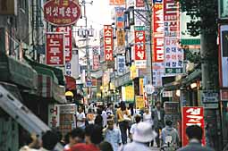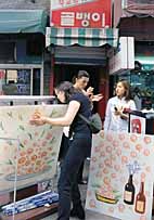 ±× ¿¹¼úÀº ¹Ù·Î ÈçÇϵð ÈçÇÑ ¡®°£ÆÇ¡¯ÀÌ´Ù. õÆíÀÏ·üÀûÀÎ °£ÆÇÀ» »õ·Î¿î ½Ã°¢À̹ÌÁö ½ÇÇèÀÇ Àç·á·Î »ïÀÚ´Â ¡®½ÃÀåÅë ¸ÞÀÌÅ©¾÷Àü¡¯ÀÌ ½ÃÀ۵Ǵ ³¯À̾ú´Ù. µ¿³× ¾ÆÁָӴϵéÀÇ ´ëÈó·³ Á¶±×¸¸ ´ßÁýÀÎ °æ±â´ßÁý¿¡µµ Ä¿´Ù¶õ õ¿¡ ´ß°ú »ç¶÷À» ±×¸° °°æ¹Î¾¾ÀÇ ¡®¿¹¼ú¡¯ °£ÆÇÀÌ º¯º¯ÇÑ °£ÆÇÁ¶Â÷ ¾ø´ø ´ßÁý À§¿¡ »õ·Î °É·È´Ù. ¡®½ÃÀåÅë ¸ÞÀÌÅ©¾÷Àü¡¯ÀÌ ¿¸®´Â È«´ë ¾Õ ½ÃÀåÅë °ñ¸ñÀº ¿©´À °ñ¸ñ°ú ´Ù¸¦ ¹Ù ¾ø´Â Æò¹üÇÑ ¼¿ïÀÇ µÞ°ñ¸ñÀÌ´Ù. ±×¸®°í ¿Â°® »ö±ò°ú ±Û¾¾·Î ¹ü¹÷ÀÌ µÈ ³»ðÇÑ °£ÆÇµéÀÌ ÇàÀÎÀÇ ´«À» ¾ÐµµÇÏ´Â °÷ÀÌ´Ù. ¼¼·ÃµÈ »ó¾÷Áö¿ªÀ¸·Î ²ÅÈ÷´Â È«ÀÍ´ë ¾Õ¿¡¼µµ °¡Àå ³°°í Åð¶ôÇÑ °ñ¸ñÀ̱⵵ ÇÏ´Ù. ±×·¡¼ °£ÆÇ ¿ª½Ã Æû³ª°í »ê¶æÇÑ °Íº¸´Ù´Â À¯Ä¡ÇÏ°í ¿ä¶õÇÑ °Íµé¸¸ ´öÁö´öÁö °Ç¹°À» µÚµ¤°í ÀÖ´Ù. ±×·± °£ÆÇ¿¡ ¿¹¼úÀû ½Ãµµ¸¦ µ¡¾º¿ö °¡°ÔÀÇ Æ¯¼º°ú °Å¸® ºÐÀ§±â¿¡ ¸Â´Â »õ·Î¿î ½Ã°¢À̹ÌÁö·Î ¸¸µé¾îº¸ÀÚ´Â °ÍÀÌ ¡®½ÃÀåÅë ¸ÞÀÌÅ©¾÷Àü¡¯ÀÌ´Ù. ÀÌ °ñ¸ñ 10°÷ÀÇ Á¡Æ÷ °£ÆÇÀ» ÀþÀº ¹Ì¼ú°¡µéÀÌ °¢°¢ »õ·Î¿î ÀÛǰÀ¸·Î ¸¸µé¾î°¡´Â °ÍÀÌ´Ù. ¿ÀÈÄ 6½Ã²² ¸ðµç ÀÛǰÀÌ °É¸®°í, Àü½Ãȸ´Â ½ÃÀ۵ƴÙ. ¿°³ÀÇ ¡®ÀÛǰ¡¯µéÀº 20¿©m ¾ÈÆÆÀÇ °ñ¸ñ ±ºµ¥±ºµ¥ Àü½Ãȸ¸¦ ¾Ë¸®´Â ºÓÀº ±ê¹ß°ú ÇÔ²² ¸ð½ÀÀ» µå·¯³Â´Ù. °ñ¸ñ ÃÊÀÔÀÇ µ¿º¸Á¤À°Á¡¿¡´Â ¹®º´µÎ¾¾°¡ ¸¸µç »õ °£ÆÇÀÌ ´Þ·È´Ù. Åõ¸íÇÑ ¾ÆÅ©¸±ÆÇ¿¡ µÅÁö°¡ »õ°ÜÁ® ºÒºûÀ» ¹ÞÀ¸¸é µÅÁöÀÇ ÇÏ¾á ¸ð½ÀÀÌ ´õ¿í ºÎ°¢µÇ´Â °£ÆÇÀÌ´Ù. À̾îÁö´Â ½Å¹ß°¡°Ô¿¡µµ ÀÎÁ¶Àܵð·Î ¸¸µç ³ÎÆÇ¿¡ ½Å¹ßÀÌ ÄݶóÁÖó·³ ±×·ÁÁø Á¤ÁÖÀº¾¾ÀÇ ¡®ÀÛǰ¡¯ÀÌ °É·È°í, ¿øÁ¶°ñ¹ðÀÌÁý ÀÔ°£ÆÇÀº Á¤¼öÁø¾¾°¡ ¡®°ñ¹ðÀÌ¡¯·Î ÈçÈ÷ ºÎ¸£´Â ÄÄÇ»ÅÍ ÀÚÆÇÀÇ¡®@¡¯°¡ Á¢½Ã À§¿¡ °¡µæÇÑ ±×¸²À¸·Î ¹Ù²î¾ú´Ù. ¸Ç ¸¶Áö¸· ¼±³¸Å¿îÅÁÁý °£ÆÇÀº ¸¸ÈÇü½ÄÀ¸·Î ¸¸µé¾îÁø ±Ç±â¼ö¾¾ÀÇ ÀÛǰÀ¸·Î ¸é¸ð¸¦ ÀϽÅÇß´Ù. ¡°¾î´À ³¯ °©Àڱ⠴«À» ¾ÐµµÇÏ´Â ¼¿ï °Å¸®ÀÇ °£ÆÇµéÀ» º¸´Â ¼ø°£ ±¸ÅäÁõ»óÀÌ ¸ô·Á¿Ô¾î¿ä. µµ´ëü ¿Ö Àú·¸°Ô ¾îÁö·´°í ½Ã°¢ÀûÀ¸·Î Æø·ÂÀûÀÎ °£ÆÇµé¸¸ÀÌ °Å¸®¸¦ µÚµ¤°í ÀÖÀ»±î ÇÏ´Â »ý°¢À» ¶³Ä¥ ¼ö°¡ ¾ø¾ú½À´Ï´Ù. Áö±Ý ¿ì¸® ÁÖº¯¿¡¼ Á¢ÇÒ ¼ö ÀÖ´Â °¡Àå Ä£¼÷ÇÑ ½Ã°¢¹®È·Î¼ °£ÆÇÀ» ÁÖ¸ñÇØ °£ÆÇÀ» ¿¹¼ú°¡ÀÇ ¹Ì°¨À¸·Î ¡®¸ÞÀÌÅ©¾÷¡¯Çغ¸ÀÚ°í ÇÑ °ÅÁÒ.¡± ÀÌ Àü½Ã¸¦ ±âȹÇÑ À̼¼¿µ¾¾ÀÇ ¸»Ã³·³ ½ÃÀÛÀº ´©±¸³ª ´À³¢´Â ¹®Á¦¿¡¼¿´´Ù. À̻갡Á·À» ¸¸³ª·¯ ¿Â ºÏÇÑ ¹æ¹®´ÜÀÌ ¼¿ï °Å¸®¸¦ ±¸°æÇÑ µÚ ǰÆòÇÑ Ã¹¸¶µð°¡ ¡°µµ´ëü ¿Ö Àú·¸°Ô ¿Ü±¹¾î°¡ ¸¹°í ¿ä¶õ½º·± °£ÆÇµéÀÌ °Å¸®¸¦ µÚµ¤°í ÀÖ´À³Ä¡±´Â ÁöÀûÀ̾úÀ» ¸¸Å ¼¿ïÀÇ °£ÆÇ¹®È´Â ¸¹Àº À̵é·ÎºÎÅÍ ½É°¢ÇÑ ¹®Á¦·Î ÁöÀûµÅ ¿Ô´Ù. °Ç¹° ¿Üº®ÀÌ ¿ø·¡ ¹«½¼ »öÀ̾ú´ÂÁö ¾Ë¾Æº¸±â Èûµé Á¤µµ·Î °£ÆÇµéÀÌ °Ç¹° Àüü¸¦ µ¤´Â °æ¿ìµµ ÈçÇÒ Á¤µµ·Î ¼¿ïÀº °£ÆÇÀ¸·Î ¡®¿À¿°¡¯µÅ ÀÖ´Ù. ¿À·ÎÁö Àڱ⠻óÁ¡¸¸À» ¾Ë¸®±â À§ÇØ Àý±ÔÇÏµí ¿ä¶õÇÑ »ö±ò°ú ±Û¾¾·Î Ä¡ÀåÇÑ °£ÆÇµéÀÌ µ¢¾î¸®¸¦ ÀÌ·ç°í ÀÖ¾î ÇàÀεéÀº µÇ·¹ ¾îµð´Ù ´«À» µÖ¾ß ÇÒÁö ¸ð¸¦ Áö°æÀÌ´Ù. ¹®Á¦´Â Áú¼µµ ¾ø°í ÁÖº¯°ú Á¶Èµµ ¾øÀÌ ¿Â °Å¸®°¡ ±×·¸°Ô ³À⽺·± °£ÆÇ¿¡ µÚµ¤ÀÌ´Â ¹Ù¶÷¿¡ µµ½ÃÀÇ À̹ÌÁö¸¦ ¸ÁÄ¡°í º¸ÇàÀڵ鿡°Ôµµ ºÒÆí½º·´´Ù´Â Á¡ÀÌ´Ù. ±×·³¿¡µµ ÀÌ ¹®Á¦´Â ³ª¾Æ±âÁö±â´ÂÄ¿³ç Á¡Á¡ ³ªºüÁö±â¸¸ ÇÑ´Ù.