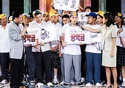 ÀÌÁß¿¡¼ <µµÀü! °ñµçº§>Àº ź»ýºÎÅͰ¡ ƯÀÌÇß´Ù. ¿ø·¡ ÀÌ ÇÁ·Î±×·¥Àº 1998³â 10¿ù¿¡ ½ÃÀÛÇÑ <Á¢¼Ó! ½Å¼¼´ë>¶ó´Â ÇÁ·Î±×·¥À̾ú´Ù. ÀÌ ÇÁ·Î±×·¥Àº ¡®À¯¾Æµ¶Á¸¡¯ ¡®³» ¸¶À½À» ¹Þ¾ÆÁ࡯ µîÀÇ ÄڳʷΠÀÌ·ç¾îÁ® ÀÖ¾ú´Âµ¥, ÀÌÁß ÇÑ Äڳʰ¡ ¡®µµÀü! °ñµçº§¡¯À̾ú´Ù. ±×·±µ¥ ÀÌ ¡®µµÀü! °ñµçº§¡¯ Äڳʰ¡ ¸·°ÇÑ Àα⸦ ¾òÀ¸¸é¼ ¾Æ¿¹ ÇÁ·Î±×·¥ Á¦¸ñµµ ¹Ù²Ù°í 1999³â 9¿ùºÎÅÍ ¡®µµÀü! °ñµçº§¡¯¸¸À¸·Î ÇÁ·Î±×·¥À» ¶ç¿î °ÍÀÌ´Ù. ½ÃûÀÚµéÀÇ ¿å±¸°¡ ÇÁ·Î±×·¥À» ¿ÏÀüÈ÷ °³ÆíÇÑ ¼ÀÀÌ´Ù. ÀÌ ÇÁ·Î±×·¥Àº ƯÈ÷ ±âÁ¸ ÄûÁîÇÁ·Î±×·¥ÀÇ Çü½ÄÀ» ¸¹ÀÌ ¹Ù²Ù¾ú´Ù. 100¸íÀ̶ó´Â ¸·´ëÇÑ Ã⿬ÀÚ ¼öµµ ±×·¸Áö¸¸, Ã⿬ÀÚµéÀÌ °í¹«±ò°³¸¦ ±ò°í ¹Ù´Ú¿¡ öǪ´ö ÁÖÀú¾É¾Æ ÀÖ´Ù´Â Á¡µµ ±×·¸´Ù. Çѱ¹¹æ¼Û°ø»ç¿¡¼ ±Ù¹«Çϸç ÀÎÅͳݿ¡¼ TVÆò·ÐÀ» Çϰí ÀÖ´Â È«°æ¼ö PD´Â ¡°Ã¥»ó ¾Õ¿¡ ¼´Â ÇàÀ§´Â Á¦µµ°¡ °®°í ÀÖ´Â ¼øÄ¡µÈ ÇàÀ§ÀÇ Ç¥»óÀε¥, ¹Ù´Ú¿¡ ¾É´Â ÇàÀ§´Â Àΰ£ÀÌ ¿øÃÊÀûÀÎ ¹æ¹ýÀ¸·Î Ä¿¹Â´ÏÄÉÀ̼ÇÇÏ´Â °ÍÀ¸·Î º¸Àδ١±¶ó°í ÀÌ ¹ÌÀå¼¾À» Æò°¡ÇÑ´Ù. ÁøÇà¹æ½Ä ¿ª½Ã ±âÁ¸ÀÇ ÄûÁîÇÁ·Î±×·¥°ú´Â ¸¹ÀÌ ´Ù¸£´Ù. ±âÁ¸¿¡´Â 1 ´ë 1 ȤÀº 2 ´ë 2 ´ë°á¹æ½ÄÀÇ ÄûÁî°¡ ¸¹¾Ò´Âµ¥ ÀÌ ÇÁ·Î±×·¥Àº ´©±¸¿Í ´©°¡ ´ë°áÇÑ´Ù´Â °³³äÀÌ ¾Æ´Ï´Ù. ÇÑ °íµîÇб³¸¦ ÁöÁ¤Çؼ ±× Çб³ÀÇ °íµîÇлý 100¸íÀÌ Ã⿬ÇÑ´Ù. ±×µéÀÌ 50°³ÀÇ ¹®Á¦¸¦ Ǫ´Â °ÍÀÌ´Ù. 50°³¸¦ ´Ù ¸ÂÈ÷¸é °ñµçº§ÀÌ ¿ï¸°´Ù. µû¶ó¼ ³Ê¸¦ ¶³¾î¶ß·Á¾ß ³»°¡ »ê´Ù´Â °³³äÀÌ ¾Æ´Ï´Ù. ÇѸíÀÌ¶óµµ ´õ ¸¹ÀÌ ³²¾Æ¾ß °ñµçº§À» ¿ï¸± ¼ö ÀÖ´Â °ÍÀÌ´Ù. ¶ÇÇÑ ÀÌÀüÀÇ ÄûÁîÇÁ·Î±×·¥ÀÌ ÄûÁ Ǫ´Â »ç¶÷°ú °´¼®ÀÌ ºÐ¸®µÇ¾î ÀÖ´ø °Í¿¡ ¹ÝÇØ <µµÀü! °ñµçº§>Àº °´¼®°ú ÄûÁ Ǫ´Â û¼Ò³âÀÌ º°·Î ±¸ºÐµÇÁö ¾Ê´Â´Ù. Ã⿬ÀÚ°¡ 100¸íÀ̴ϸ¸Å ¹®Á¦¸¦ Ç®´Ù°¡ °´¼®À¸·Î °¡±âµµ ÇÏ°í °´¼®¿¡ ÀÖ´Ù°¡µµ <ÆÐÀÚºÎȰÀü>À» ÅëÇØ¼ ´Ù½Ã ¹®Á¦¸¦ Ç®±âµµ ÇÑ´Ù. ÇлýµéÀÌ Ä£±¸µéÀÇ À̸§Ç¥¸¦ ÁÖ··ÁÖ·· ¸ö¿¡ ´Þ°í ÀÌ ÇÁ·Î±×·¥¿¡ Ã⿬ÇÏ´Â °Íµµ ÀÌÀü ÇÁ·Î±×·¥°ú´Â ´Ù¸¥ Á¡ÀÌ´Ù. ÀÌÀü ÄûÁîÇÁ·Î±×·¥¿¡¼´Â °ö°Ô Â÷·ÁÀÔÀº ÇлýµéÀÌ ¿¹ºñ ¿¤¸®Æ®´Ù¿î ¸ð½ÀÀ» º¸ÀÌ´Â ¹Ý¸é, <µµÀü! °ñµçº§>¿¡¼´Â ÁÁ¾ÆÇϴ ģ±¸µéÀÇ À̸§ÀÌ Ä«¸Þ¶ó¿¡ ÀâÇô Àü±¹¿¡ Àá±ñÀÌ¶óµµ ³ª°¡°Ô Çϱâ À§Çؼ ÀÚ½ÅÀÇ ½ºÅ¸ÀÏÀÌ ¸Á°¡Áö´Â °Íµµ ºÒ»çÇÑ´Ù. À̸§Ç¥¸¦ ¸î½Ê°³³ª ¸ö¿¡ ºÙÀ̰í ÀÖ´Â Ã⿬ÀÚÀÇ ¸ð½ÀÀº ÀÚ½ÅÀÌ È¥ÀÚ°¡ ¾Æ´Ï¶ó Ä£±¸µéÀÇ ´ëÇ¥ÀÚ¶ó´Â °ÍÀ» ´ÜÀûÀ¸·Î º¸¿©ÁÖ°í ÀÖ´Ù. ÀÌ ÇÁ·Î±×·¥ÀÇ ³ªÇý°æ PD´Â ¡°»óǰÀÌ Çö±ÝÀÌ ¾Æ´Ï¶ó ³ëÆ®ºÏ, ½Ã°è µîÀε¥µµ ÇлýµéÀÇ ¿±â´Â ¶ß°Ì´Ù. °ñµçº§À» ¿ï¸®´Â µ¥¿¡ Çб³ÀÇ ¸í¿¹°¡ ´Þ·Á ÀÖ´Ù°í »ý°¢Çϱ⠶§¹®ÀÌ´Ù¡±¶ó°í ¸»ÇÑ´Ù. ½ÇÁ¦·Î 50¹®Á¦¸¦ ´Ù Ç®±â´Â ½±Áö ¾Ê¾Æ¼, ¹æ¼ÛȽ¼ö°¡ 68ȸ¿¡ À̸£´Â µ¿¾È 17¸í¸¸ÀÌ ¼º°øÇß´Ù. °æÀïÀÌ ¾Æ´Ñ °ø»ý, Ä£±¸¿Í ½Î¿ì´Â °ÍÀÌ ¾Æ´Ï¶ó ÄûÁî¿Í ´ë°áÇÑ´Ù´Â °³³äÀÇ ÀÌ ÇÁ·Î±×·¥Àº ¡®Á¦3ȸ ¹æ¼Û ÇÁ·Î±×·¥ 21»ó¡¯ û¼Ò³âºÎ¹® ¼ö»óÀÛÀ¸·Î ¼±Á¤µÇ¾ú´Ù.