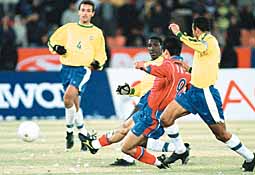 ¡®¿µ¿øÇÑ °ÀÚ´Â ¾ø´Ù¡¯¶õ ½ºÆ÷Ã÷¼¼°èÀÇ Áø¸®¸¦ ÀÔÁõÀÌ¶óµµ Çϵí ÀüÅëÀÇ °È£µéÀÌ ¹«ÂüÈ÷ ¾àÆÀ¿¡ ´ú¹Ì¸¦ ÀâÈ÷´Â °æ¿ì°¡ ¸¹´Ù. 2002³â ¿ùµåÄÅ ³²¹Ì ¹× ºÏÁ߹̿¹¼±¿¡¼µµ À̰°Àº À̺¯ÀÌ ÆÒµéÀÇ ÁÖ¸ñÀ» ²ø°í ÀÖ´Ù. ¼¼°èÃÖ°À̶ó´Â ºê¶óÁúÀÌ ÆÄ¶ó°úÀÌ¿¡ ÆÐÇϴ°¡ ÇÏ¸é ºÏ¹ÌÀÇ ¿ÕÁ ¸ß½ÃÄÚ´Â Æ®¸®´Ï´Ùµå Åä¹Ù°í¿¡ ÆÐÇÏ´Â ÆÄ¶õÀÌ ¿¬ÃâµÆ´Ù. ºê¶óÁúÀÇ ÆÐ¹è¿£ ´ç¿¬È÷ ¾ê±ê°Å¸®µµ dz¼ºÇÏ´Ù. À̱â´Â ÆÀÀÌ °è¼Ó À̱â¸é ´ç¿¬È÷ ¿©±â°ÚÁö¸¸ °è¼Ó À̱â´Ù°¡ µü Çѹø Áö¸é ±×¶© º°ÀǺ° µÞ¾ê±â°¡ ´Ù ³ª¿À´Â °Í ¾Æ´Ï°Ú´Â°¡. ºê¶óÁúÀº Áö³ 7¿ù24ÀÏ 2002¿ùµåÄÅ ³²¹ÌÁö¿ª¿¹¼± 5Â÷Àü¿¡¼ ÆÄ¶ó°úÀÌ¿¡ 1-2·Î Á³´Ù. Àü¹Ý 6ºÐ ÆÄ¶ó°úÀÌ ÆÄµ¥·¹½º¿¡°Ô ¼±Ãë°ñÀ» ³»ÁÖ¾úÁö¸¸ ÈÄ¹Ý 29ºÐ ¡®ºê¶óÁúÀÇ Èñ¸Á¡¯ È÷¹Ù¿ìµÎ°¡ µ¿Á¡°ñÀ» »Ì¾Æ³»¸ç À̺¯Àº ¾ø´Â µí½Í¾ú´Ù. ÇÏÁö¸¸ ÆÄ¶ó°úÀÌ´Â Á¾·á 6ºÐ Àü ¡®°ñ ³Ö´Â °ñŰÆÛ¡¯ Ä¥¶óº£¸£Æ®°¡ ¼öºñÁø¿µ¿¡¼ ±æ°Ô ¿Ã·ÁÁØ º¼À» ·çÀ̽º°¡ ¼öºñ¼ö 2¸íÀ» Á¦Ä¡°í °á½Â°ñÀ» ÅͶ߷Á Ȩ°üÁßÀ» ¿±¤½ÃÄ×´Ù.