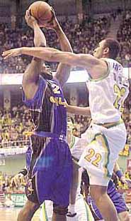 À̾î Çлý ½Åµ¿ÆÄ´Â ÀÚ½ÅÀÇ ³ó±¸Àλý¿¡¼ Àü¹«ÈĹ«ÇÑ Â¥¸´ÇÑ ¼ø°£À» °æÇèÇÑ´Ù. °æº¹ÀÌ ÈÖ¹® Áø¿µ¿¡¼ µå·ÎÀÎÇÑ °øÀ» ¼ø½Ä°£¿¡ »¯Àº µ¿·á°¡ ½Åµ¿ÆÄ¿¡°Ô ÆÐ½º¸¦ °Ç³×ÀÚ ½Å ¼±¼ö´Â ÇÏÇÁ¶óÀÎÀ» °Ç³Ê¸ç ±×´ë·Î Áý¾î´øÁ³´Ù. °øÀº ÇÑÂü Çã°øÀ» ³¯´õ´Ï °ÅÁþ¸»Ã³·³ ³ª¹«ÆÇÀÚ·Î µÈ ¹éº¸µå¸¦ ¸Â°í °ñÀεƴÙ. ±× ¼ø°£ °æ±â ³¡À» ¾Ë¸®´Â ÃѼºÀÌ ¿ï·È´Ù. Áö±ÝÀÇ ¹öÀúºñÅÍ(buzzer beater), µûÁ®º¸¸é ¡®°Ç(gun) ºñÅÍ¡¯°¡ µÉ °ÍÀÌ´Ù. 3Á¡½¸ Á¦µµ°¡ ¾ø´ø ½ÃÀýÀÌ´Ï ÈÖ¹®ÀÌ 71-70À¸·Î ¿ªÀü½ÂÇØ ¿ì½ÂÀ» Â÷ÁöÇß´Ù. ½Å Àü¹«¿¡°Ô ±×°ÍÀº ³ó±¸ÀλýÀÇ À¯ÀÏÇÑ ¹öÀúºñÅÍ·Î ±â·ÏµÈ´Ù. Á¾·á¹öÀú¿Í µ¿½Ã¿¡ ¼º°ø½ÃŲ ½¸À» ÈçÈ÷ ¹öÀúºñÅͶó°í ¸»ÇÑ´Ù. ÀüÈÄ¹Ý È¤Àº ÄõÅ͸¶´Ù Àû¿ëµÉ ¼ö ÀÖÀ¸³ª ÁøÁ¤ÇÑ ¹öÀúºñÅÍ´Â °æ±âÁ¾·á ¹öÀú¿Í ÇÔ²² ½ÂºÎ¸¦ °áÁ¤Áþ´Â ½¸ÀÌ´Ù. ½Å Àü¹«ÀÇ È¸°í´Ù. ¡°1¡2ÃÊÂë ³²¾Ò´Ù°í »ý°¢ÇØ ±×³É °ñ´ë¸¦ ÇâÇØ ´øÁ³´Âµ¥ ¹Ù¶÷¿¡ °øÀÌ Èçµé¸®¸ç ³¯¾Æ°¡´õ´Ï ±×°Ô µé¾î°¡´õ¶ó°í. ´ç½Ã KBS ¶óµð¿À¿¡¼ ÀÓÅñ٠¾Æ³ª¿î¼°¡ Áß°èÇߴµ¥ Àå¾È¿¡ ³¸®°¡ ³µ¾î.¡± ´Ù½Ã ÇöÀç·Î µ¹¾Æ¿Í 2001³â 2¿ù19ÀÏ. ¾Ö´ÏÄÝÇÁ·Î³ó±¸ LG-SKÀüÀÌ ¿¸° â¿øÃ¼À°°ü¿¡¼ ½Å Àü¹«´Â ÀÚ½ÅÀÌ 40³â Àü¿¡ °æÇèÇÑ Àϰú ºñ½ÁÇÑ Àå¸éÀÌ ´«¾Õ¿¡¼ ÀçÇöµÈ °ÍÀ» º¸°í ³î¶ó¾ß Çß´Ù. 82-83À¸·Î ÇÑÁ¡ µÚÁø LGÀÇ 4ÄõÅÍ ¸¶Áö¸· °ø°Ý ¶§ Á¶¼º¿øÀÌ ³Ñ¾îÁö¸ç ÆÐ½ºÇÑ °øÀ» ¿¡¸¯ À̹öÃ÷°¡ ¸²µµ Á¦´ë·Î º¸ÀÌÁö ¾Ê´Â ¸ð¼¸®¿¡¼ ±×´ë·Î ´øÁø °ÍÀÌ ½Å±âÇϰԵµ ¹éº¸µå¸¦ ³Ñ¾î ¸²À» ƨ±â°í °ñÀεƴÙ. ±âÀûÀÇ 3Á¡ ¹öÀúºñÅÍ. °øÀÌ µé¾î°£ ÁÙµµ ¸ð¸£°í ÀÖ´ø À̹öÃ÷´Â °üÁßÀÇ ÇÔ¼º°ú ÇÔ²² Á¶¼º¿øÀÌ ´Þ·Á¿Í ǰ¿¡ ¾È±â°í¼¾ß ÀÏÀÌ ³ °ÍÀ» ½Ç°¨Çß´Ù°í ÇÑ´Ù. Âû³ªÀÇ ¼ø°£¿¡ ÅÍÁø ¹öÀúºñÅÍ´Â ¸®±× ¿ª»ç¸¦ ¹Ù²Û´Ù. SKÀÇ Áý¿äÇÑ Ãß°Ý¿¡ 2À§°¡ ºÒ¾ÈÇß´ø LG´Â ´Ù Áø °æ±â¸¦ À̱èÀ¸·Î½á SK¸¦ 2.5°ÔÀÓÂ÷·Î µûµ¹·Á 4°Á÷ÇàÀ» ±»Èú ¼ö ÀÖ¾ú´Ù. ½Å Àü¹«´Â ±×³¯ À̹öÃ÷ÀÇ ¹öÀúºñÅÍ´Â È®·ü 1¸¸ºÐÀÇ 1À» ±Øº¹ÇÑ °ÍÀ¸·Î ³ôÀÌ Æò°¡Çß´Ù. 1¸¸ºÐÀÇ 1ÀÌ¸é °ñÇÁÀÇ È¦Àοø È®·ü. °á±¹ Æò»ý Çѹøµµ °æÇèÇϱâ Èûµé´Ù´Â ¾ê±â´Ù. õÇÏÀÇ ½¸ÀïÀÌ¿´´ø ½Å Àü¹«µµ Æò»ý µü Çѹø ¼Õ¸ÀÀ» º¸¾ÒÀ» »ÓÀÌ´Ù. ÇÁ·Î³ó±¸ ÃÖ°íÀÇ ½´ÅÍÀÎ Á¶¼º¿øµµ ¡°ÁßÇлý ¶§ºÎÅÍ ±â¾ïÀ» ¶°¿Ã·Áº¸¾ÒÁö¸¸ ½ÂºÎ¸¦ °áÁ¤Áþ´Â ³¡³»±â ¹öÀúºñÅÍ °æÇèÀº ´Ü Çѹøµµ ¾ø´Ù¡±°í ¸»ÇÑ´Ù. ±×Àú 1ÄõÅÍ Á¾·á ¶§ 20mÂ¥¸® ¹öÀúºñÅÍ µîÀ» ÇÁ·Î¿¡ µé¾î¿Í ¸î¹ø ¼º°ø½ÃÄѺ» Á¤µµ¶ó°í ÇÑ´Ù. ½Å Àü¹«´Â À̳¯ÀÇ ¹öÀúºñÅ͸¦ ¡°À̹öÃ÷°¡ °°Àº ÁöÁ¡¿¡¼ ½¸ÀÚ¼¼¸¦ Àâ°í ¼ö¹é¹ø ´øÁ®µµ ¾È µé¾î°¡´Â ½¸¡±À̶ó°í ´Ü¾ðÇÏ¸ç ¡°¹öÀúºñÅ͵µ ¾Æ¹«¿¡°Ô³ª ¿À´Â °ÍÀÌ ¾Æ´Ï¸ç À̹öÃ÷ó·³ ¼º½ÇÇÑ ¼±¼ö°¡ Çà¿îµµ Àâ´Â °Í¡±À̶ó°í Àǹ̸¦ ºÎ¿©Çß´Ù.